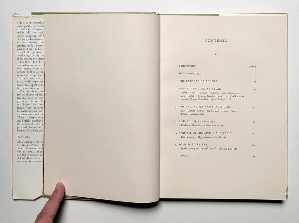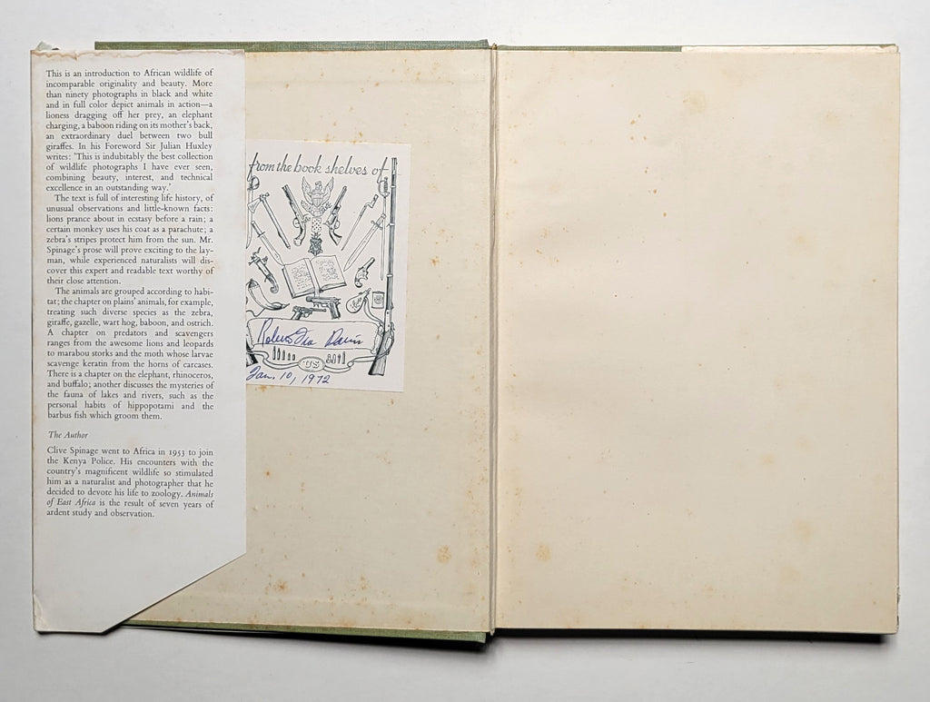 C. A. Spinage, Animals of East Africa (Foreword by Sir Julian Huxley). Boston: Houghton Mifflin, 1963 Hardbound in price-clipped dust jacket. 160 pages. Illustrated, map, index. Book and dust jacket fair. $6.