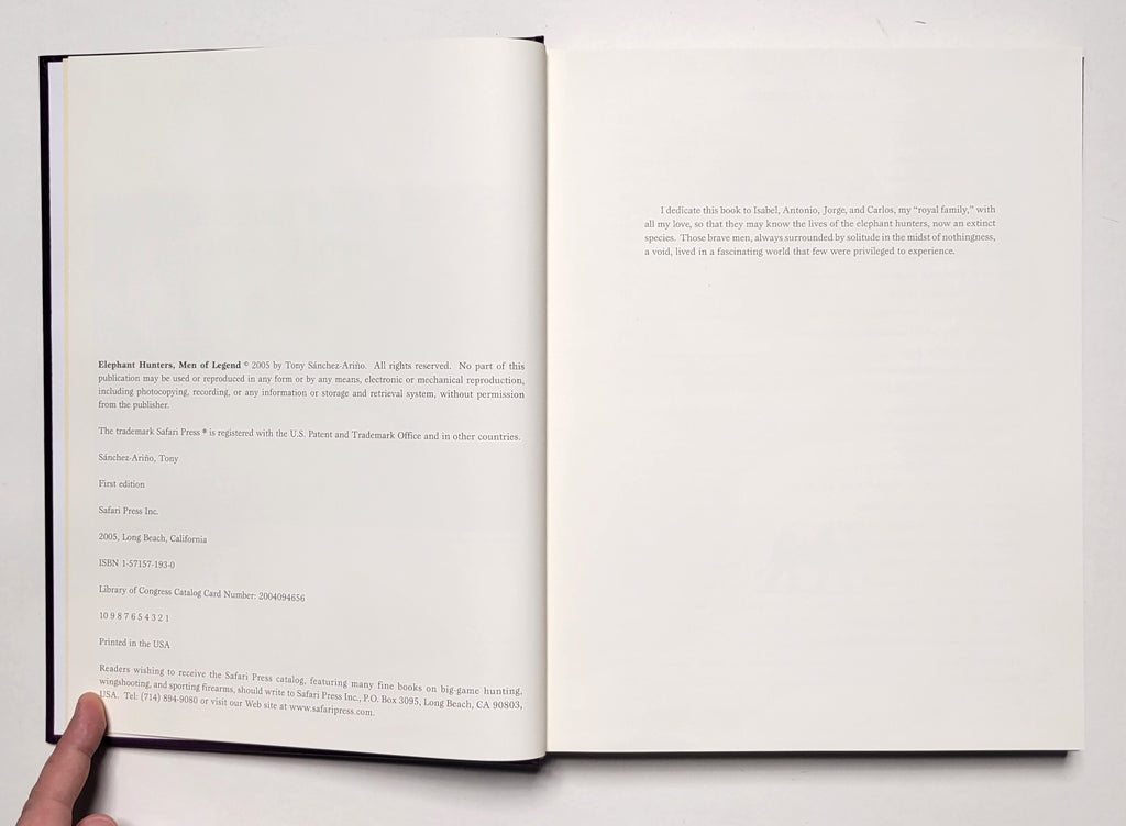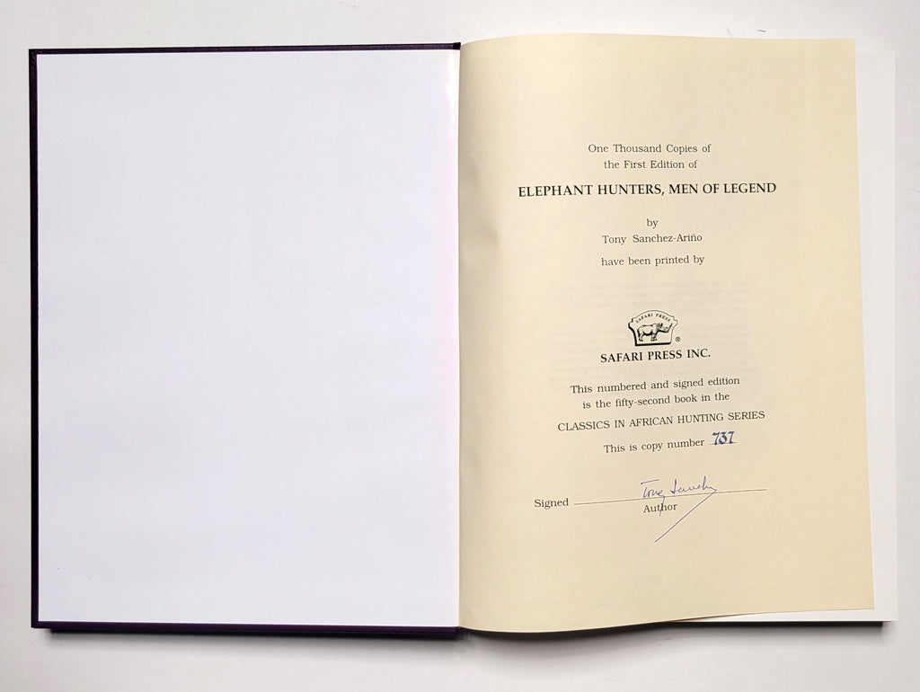 Tony Sanchez-Arino, Elephant Hunters, Men of Legend. Long Beach, CA: Safari Press, 2005. Hardbound (large format) in slipcase. Xx, 236 pages. Lavishly illustrated, bibliography. Signed copy #737 of an edition of 1000. Chapters devoted to the “greats” of elephant hunting such as Bell, Neumann, Taylor, Rushby, and many others. Very fine in very fine slipcase. $325.