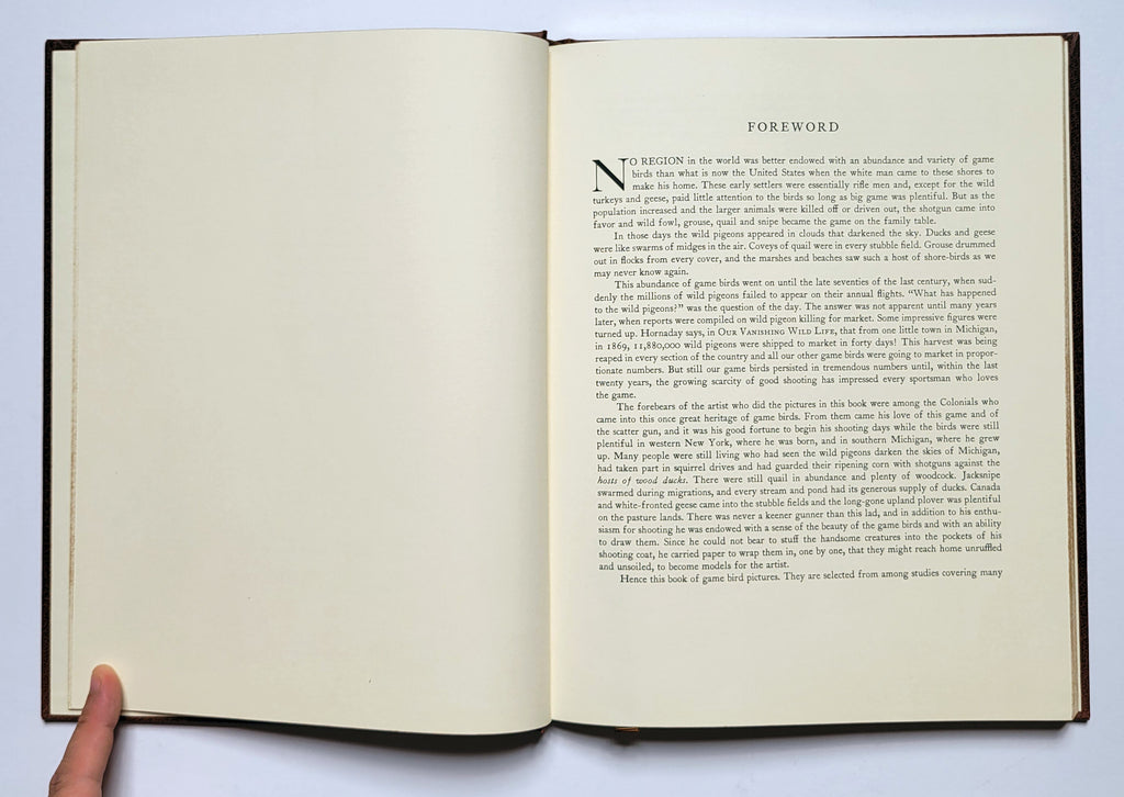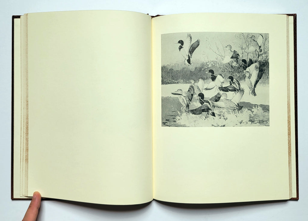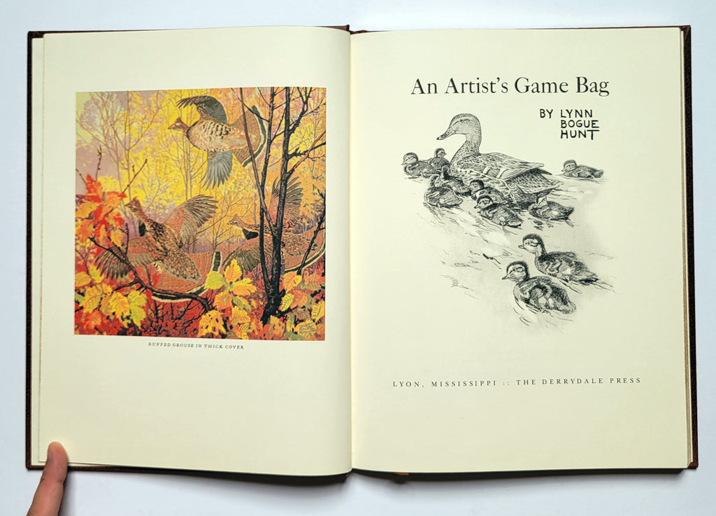 Lynn Bogue Hunt, An Artist’s Game Bag. Hardbound (large format) without dust jacket as issued. Lyon, MS: Derrydale Press, 1990. No pagination. All edges gilt, ribbon marker, decorative gilt front cover. Reprint, in 2500 unnumbered copies, of the 1936 edition. Very fine. $25.