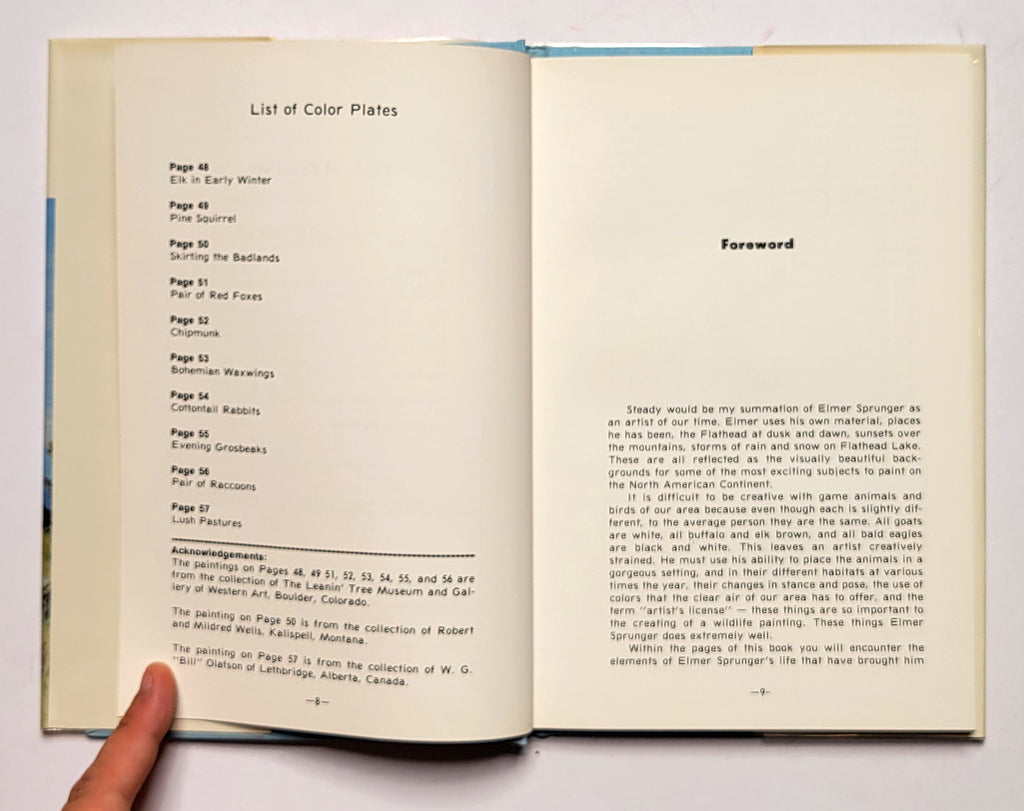 Dale A. Burk, Elmer Sprunger: Wildlife Artist. Hardbound in glassine-protected dust jacket. Stevensville, MT: Stoneydale Press, 1982. 102 pages. Illustrated (some color). Book and dust jacket very fine. $30.