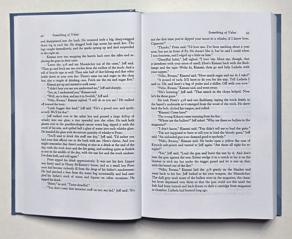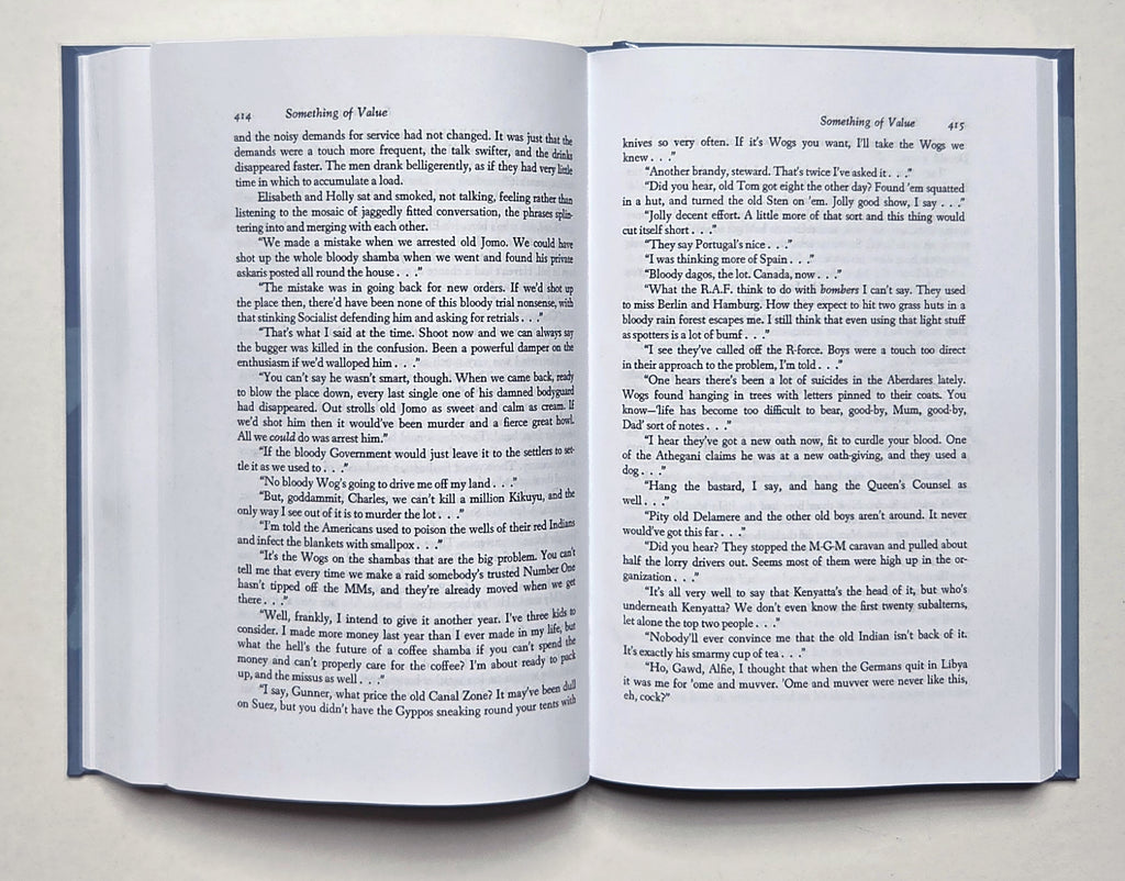 Something of Value is a novel based on events that took place in Kenya Colony during the violent Mau Mau insurrection of the 1950s, an uprising that was confined almost exclusively to members of the Kikuyu tribe. It is a powerful, gripping, and sometimes shocking novel that presents an enlightening glimpse into the lives of all sections of the population in Colonial Kenya fifty years ago.