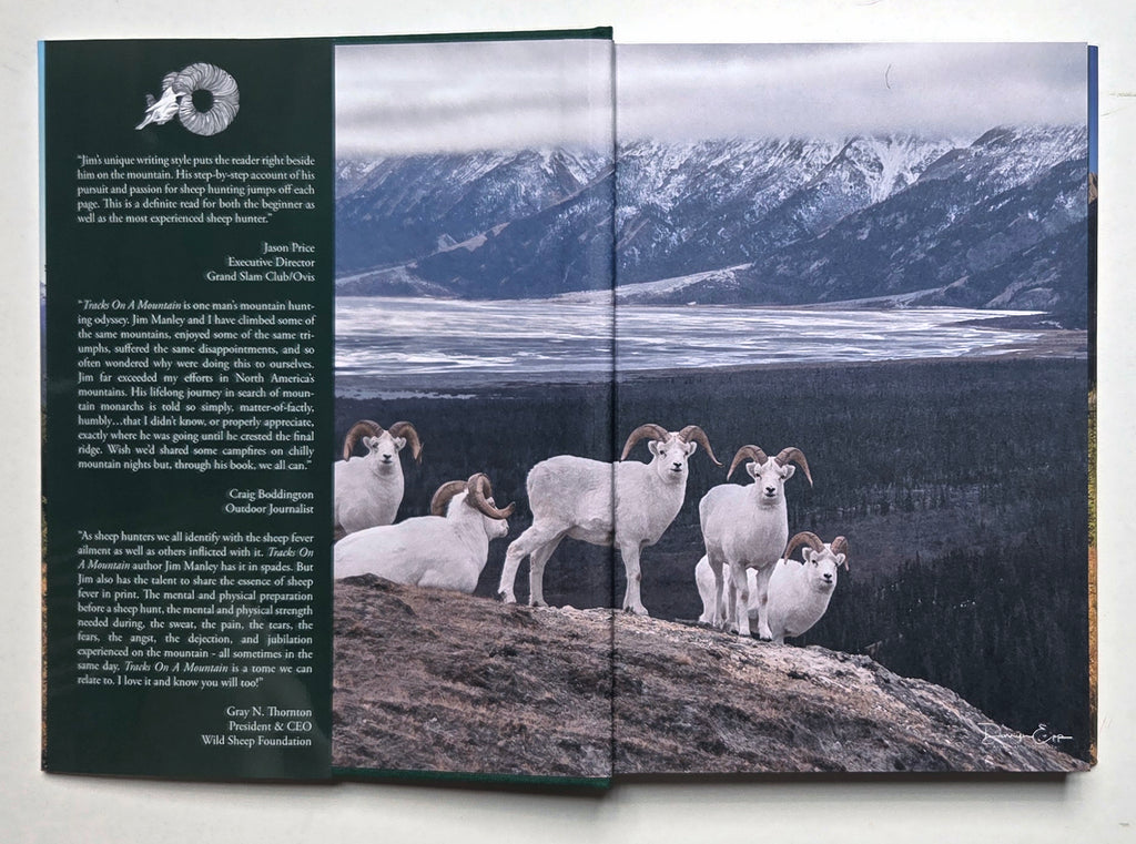 Your quads will burn, your chest will heave, and perspiration will fall from your forehead. Tracks On A Mountain puts you right there, step for step with Jim. It is so well written, and you’ll learn that Jim Manley is everything that is right about sheep hunting. He is incredibly determined and focused and made the sacrifices necessary to achieve his hunting goals. A must read for all sheep hunters, from aspiring to experienced!”