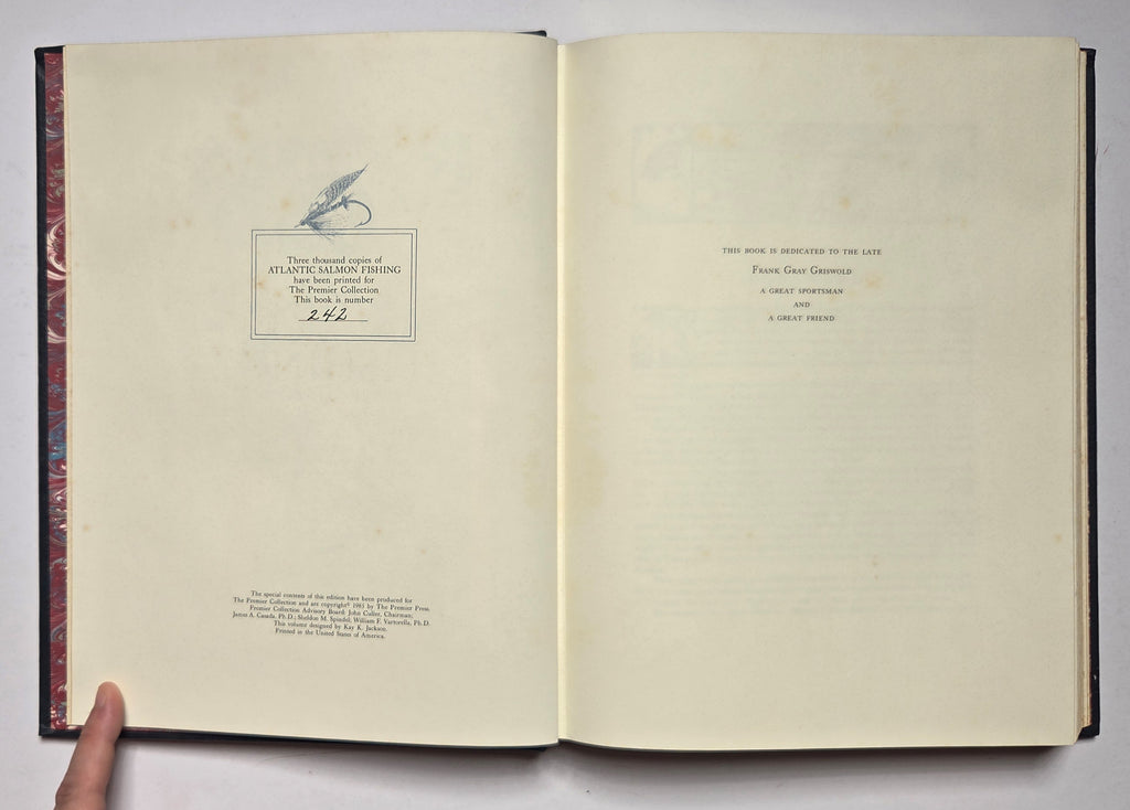 Charles Phair, Atlantic Salmon Fishing. USA: The Premier Collection, 1985. 219 pages. Hardbound. Illustrated. Limited edition #242 of 3000 copies printed. Leather boards with gilt decor. Minor foxing on pages. $40
