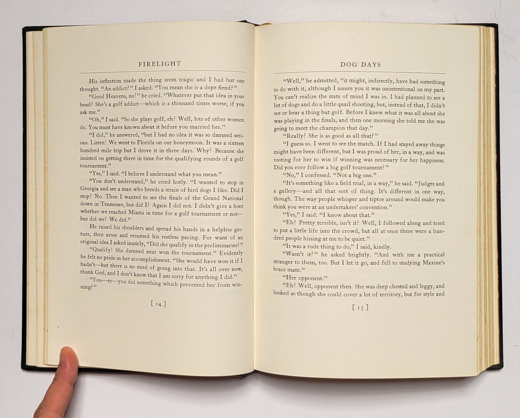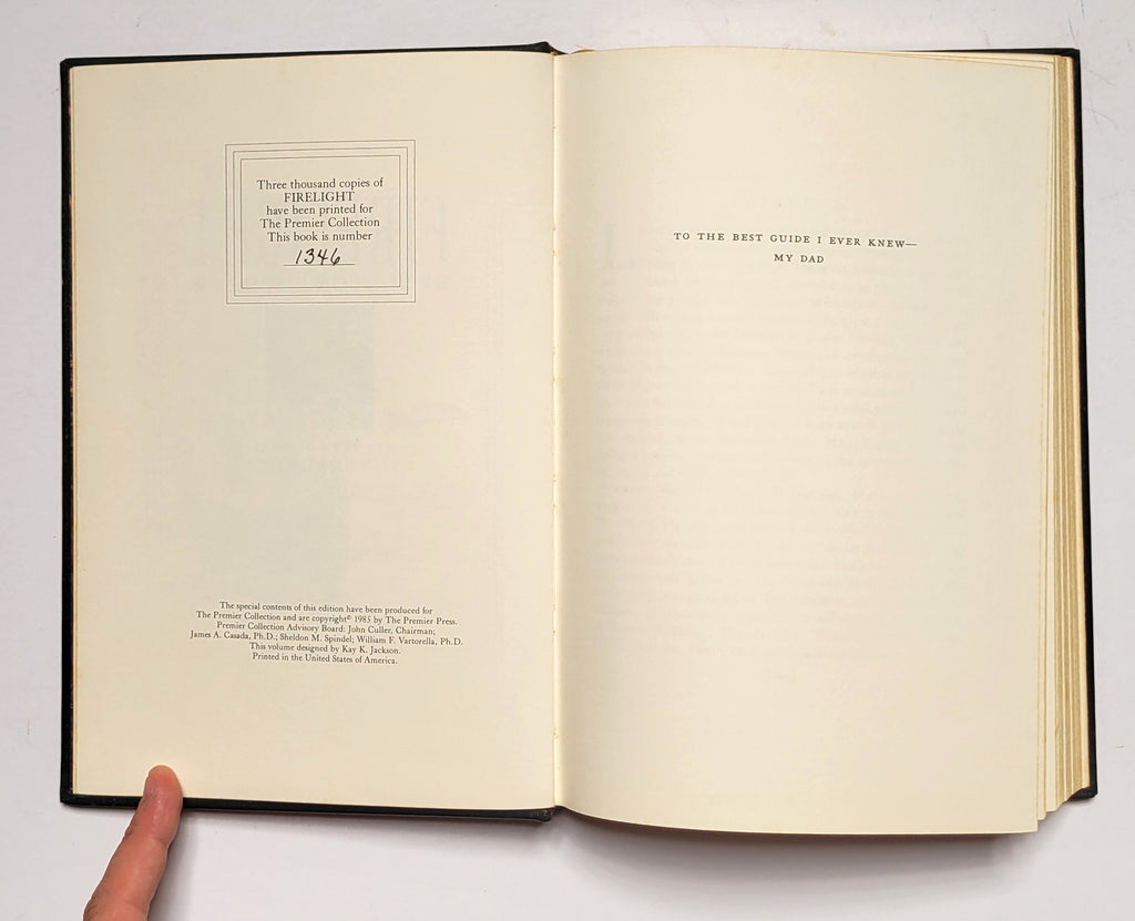 Burton Spiller, Firelight (with a new Foreword by E. M. Saniga). Camden, SC: Briar Patch Press, 1985. Hardbound in full leather. Xx, 197 pages. Illustrated, ribbon marker, all edges gilt, raised hubs, marbled endpapers. Some markings on front cover but overall good condition. Copy #1346 of an edition of 3000. $30.