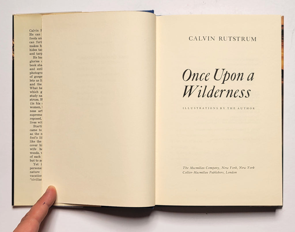 Calvin Rutstrum, Once Upon a Wilderness. Hardbound in glassine-protected dust jacket. NY: Macmillan, 1973. [viii], 181 pages. 1st printing. Illustrated. Book and dust jacket about fine. $30.