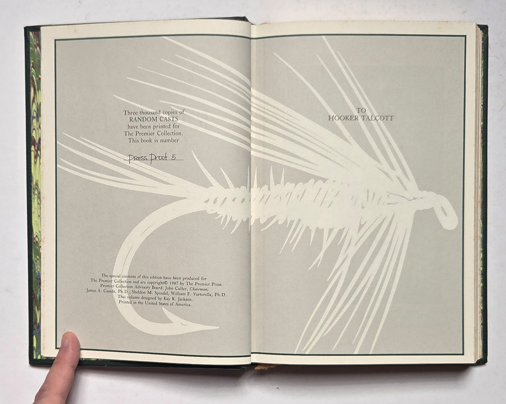 Eugene Connett, Random Casts. Camden, SC: Premier Press, 1987. With a new Foreword by Jim Casada. Leatherbound. Xxvii, 195 pages. Illustrated, all edges gilt, ribbon marker, raised hubs, etc. Press proof #5 of a limited edition of 3000.