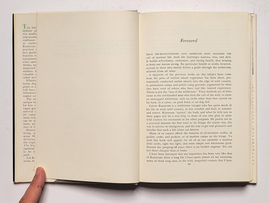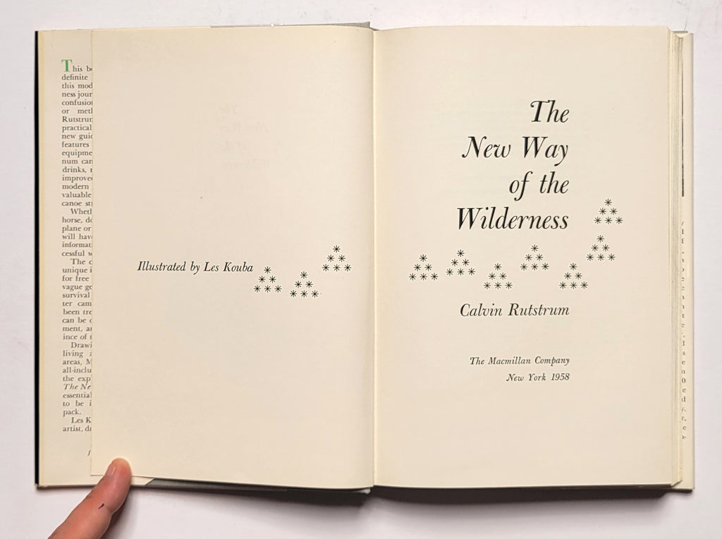 Calvin Rutstrum, The New Way of the Wilderness. Hardbound in glassine-protected dust jacket. NY: Macmillan, 1958. X, 276 pages. Illustrated, index. Book and dust jacket fine. $15.