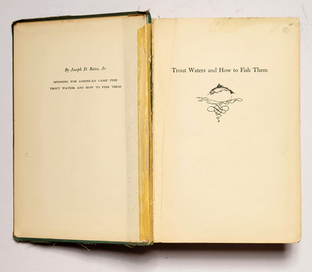Joe Bates, Trout Waters and How to Fish Them. Boston: Little, Brown, & Co., 1949. Hardbound. xiv, 316 pages. Illustrated. Ex lib. copy; quite worn. $5.