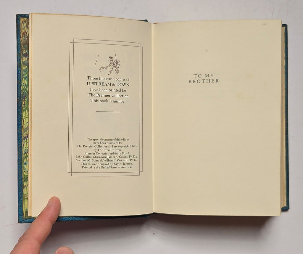 Howard L. Walden, II, Upstream & Down (with a Foreword by Paul Schullery). Camden, SC: Premier Press, 1985. Hardbound in bonded leather. Xxx, 367 pages. All edges gilt, raised hubs, ribbon marker, marbled endpapers. Limited edition of 3000. $55.