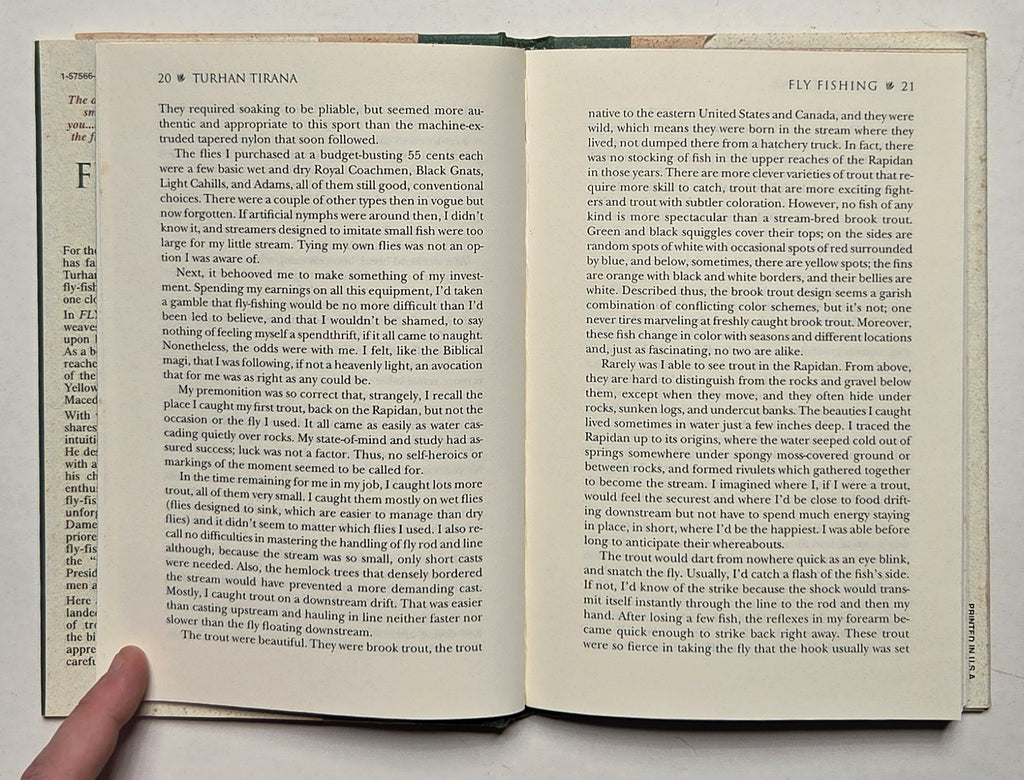 In Fly Fishing: A Life in Mid-Stream, Turhan Tirana weaves memories and anecdotes to reflect upon his remarkable life as a fly-fisherman. As a boy he caught his first trout in the upper reaches of Virginia's Rapidan River. His love of the sport has taken him from Montana's Yellowstone River to such far-away places as Macedonia and Slovenia.