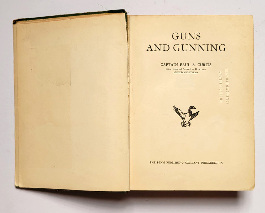 Capt. Paul A. Curtis, Guns and Gunning. Philadelphia, PA: Penn Publishing Co., 1934. Hardbound. Illustrated. Poor ex lib. copy—reading copy only. $5