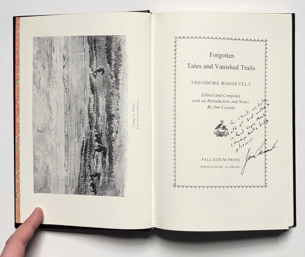 Theodore Roosevelt, Forgotten Tales and Vanished Trails. Birmingham, Alabama Palladium Press. Signed and inscribed by Jim Casada.