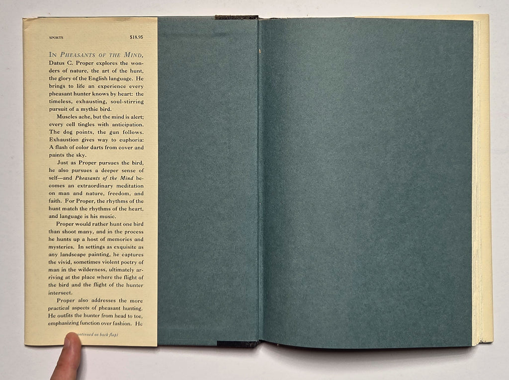 In Pheasants of the Mind, Mr. Proper explores not only his personal, and quite entertaining, exploits while chasing pheasants, but he also covers the fairly esoteric subject of pointing dogs for pheasants and outfitting for a successful hunt, based on the culmination of years of experience.