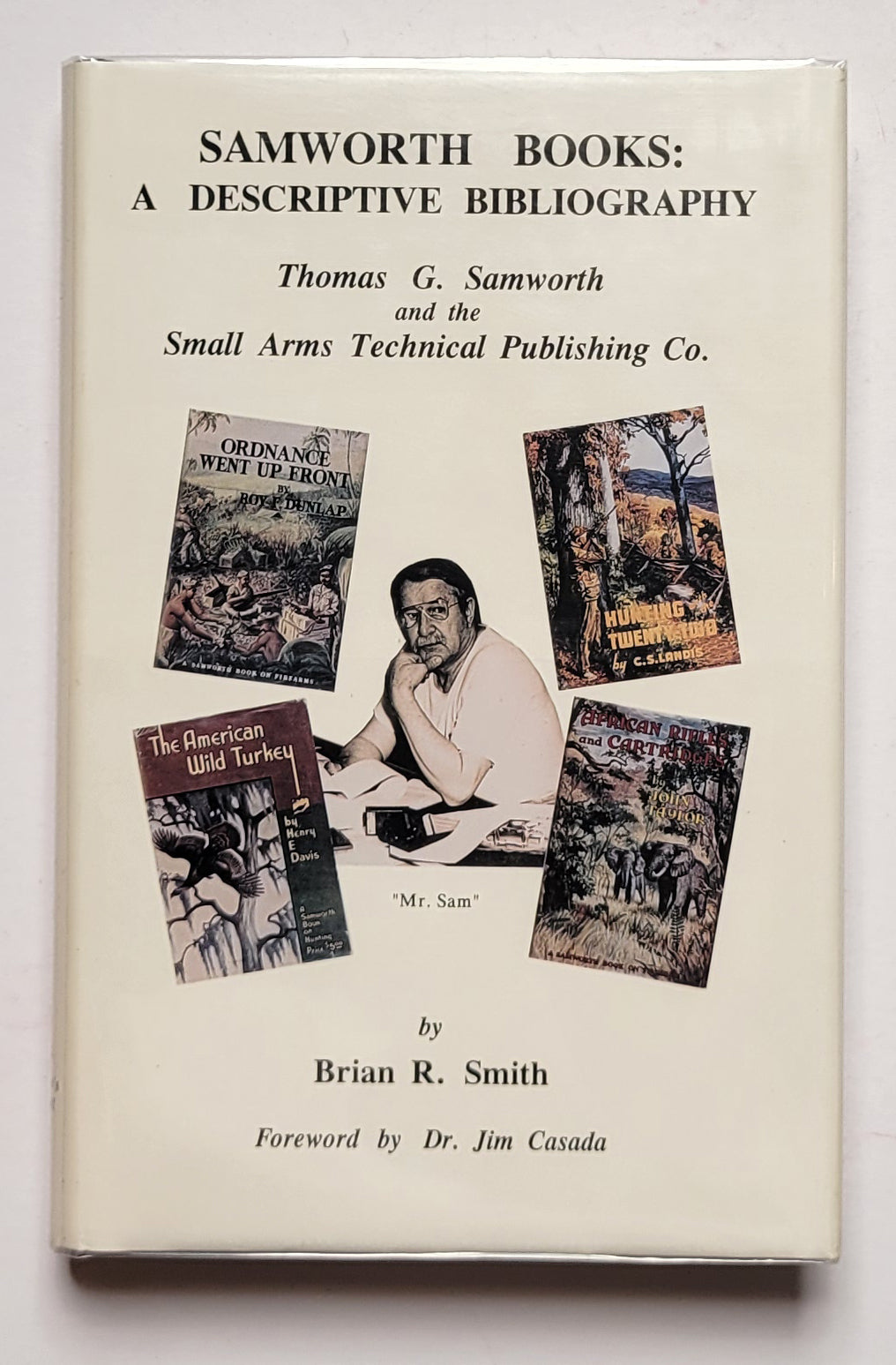 Brian R. Smith, Samworth Books: A Descriptive Bibliography—Thomas G. Samworth and the Small Arms Technical Publishing Co. (with a Foreword by Dr. Jim Casada)Hardbound in glassine-protected dust jacket. Luke, MD: The Marksman’s Bookshelf, 1990. 318 pages. 1st edition. errata slip, illustrated. Signed by Casada. Book and dust jacket very fine. $50.