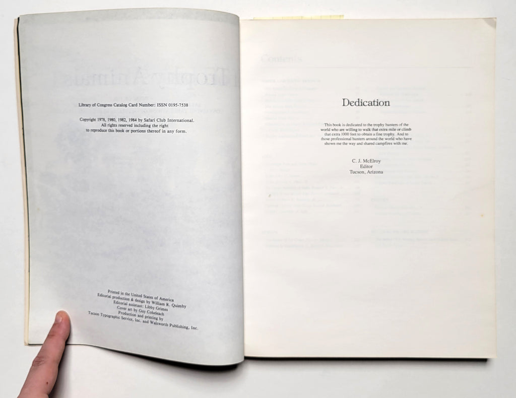 C. J. McElroy (Editor), SCI Record Book of Trophy Animals: North & South America. Tucson, AZ: SCI, 1984. Paperbound. 315 pages. Illustrated. Fourth edition in a special field version of this standard reference work. About good. $20.