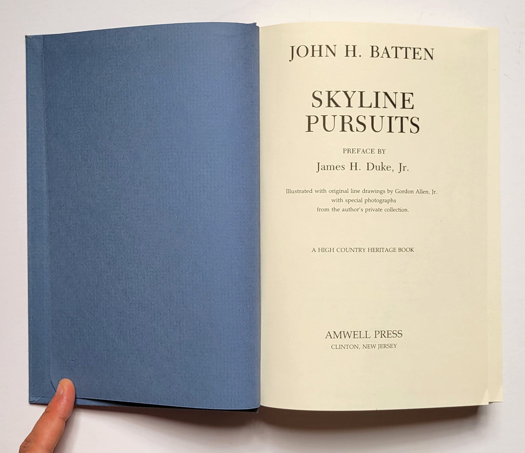John Batten, Skyline Pursuits. Clinton, NJ: Amwell Press, 1989. Hardbound in cloth with a slipcase. Xiv, 318 pages. First trade printing. Book and slipcase good to very good. $40.