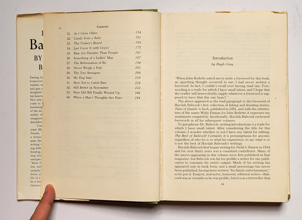 Havilah Babcock, The Best of Babcock (Selected and with an Introduction by Hugh Grey). NY: Holt, Rinehart and Winston, 1974. 1st edition. Hardbound in price-clipped dust jacket. x, 262 pages. Ex lib. copy with typical markings and portion of blank front page clipped. Reading copy. $6.