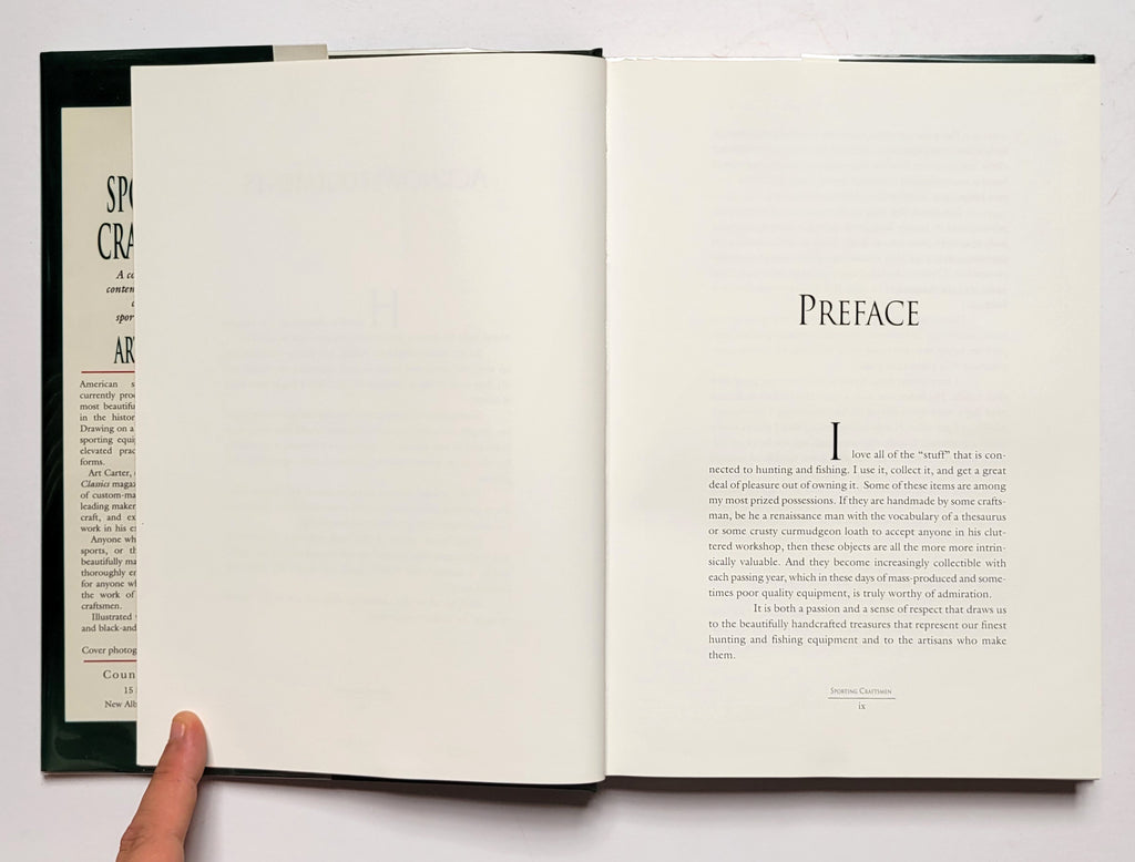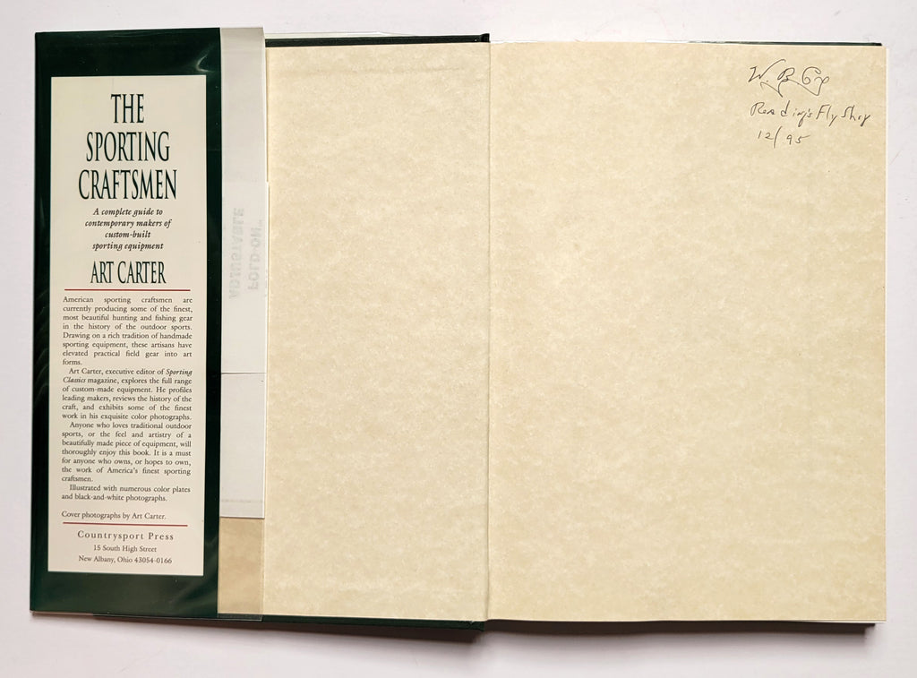 Art Carter, The Sporting Craftsmen: A Complete Guide to Contemporary Makers of Custom-Built Sporting Equipment. Hardbound in glassine-protected dust jacket. New Albany, OH: Countrysport Press, 1994. Xii, 244 pages. 1st trade edition. Illustrated. Book and dust jacket fine. $25.