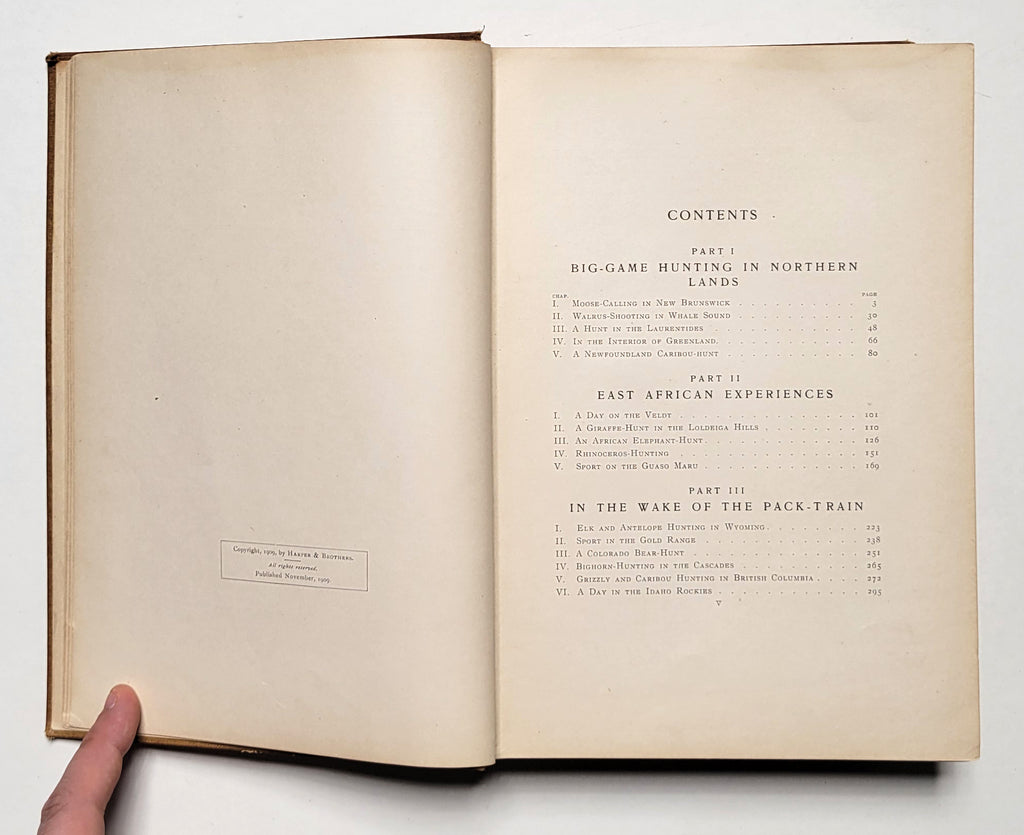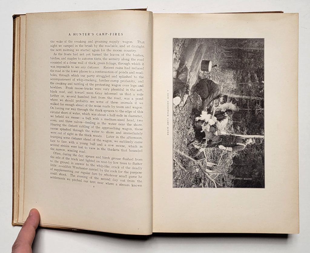 Edward J. House, A Hunter’s Camp-Fires. NY and London: Harper Brothers, 1909. Hardbound. 402 pages. Illustrated. Fair. $45.