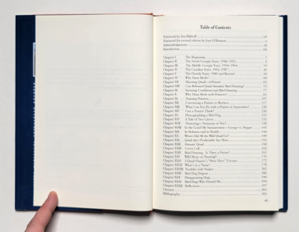 The initial chapters contain a description of his quail hunting in various venues in the Old South. These are followed by sections that address specific aspects of quail hunting. There are several stories that deal with individual experiences involving bird dogs. The chapter entitled "Covey Call" is a poignant reminder of the Civil War. During this odyssey, he has used several vintage double-barrel shotguns, including the Parker and a gauge Purdey. Anyone interested in the grand sport, especially in its evolution over the past sixty years, will both be entertained and enlightened by the account of his experiences.