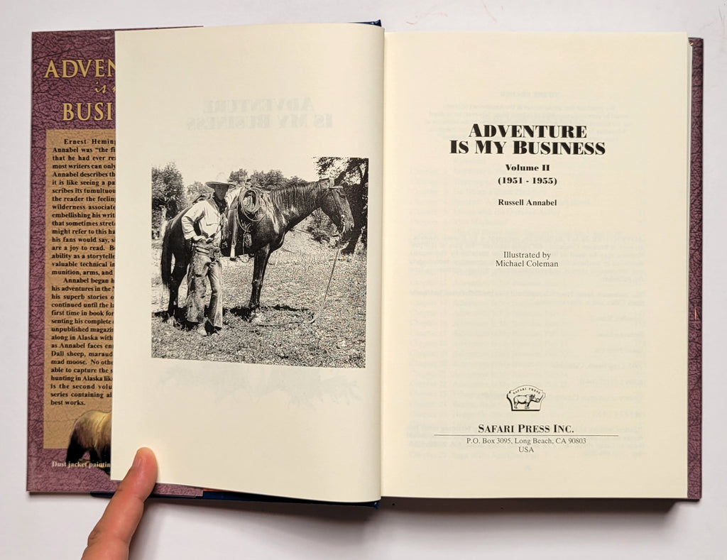 Russell Annabel, Adventure Is My Business. Hardbound in glassine-protected dust jacket. Long Beach, CA: Safari Press, 1997. Viii, 341 pages. Illustrated, bibliography. Book and dust jacket very fine. $35.