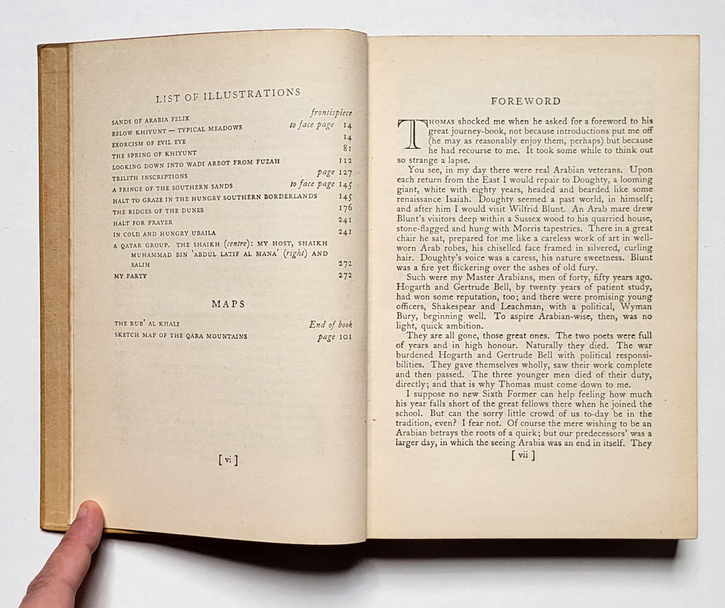 Bertram Thomas, Arabia Felix: Across the Empty Quarter of Arabia (with a Foreword by T. E Lawrence). Jonathan Cape: Readers Union, 1938. Hardbound. xvi, 304 pages. Illustrated, index. Fair. $12.