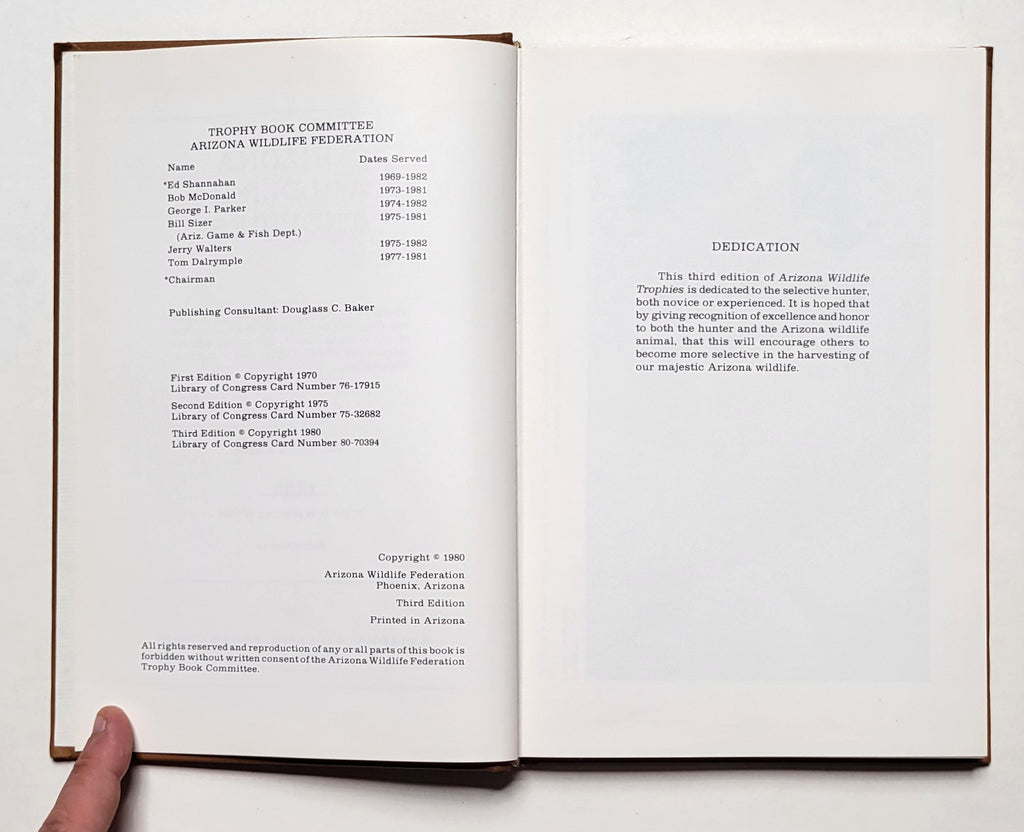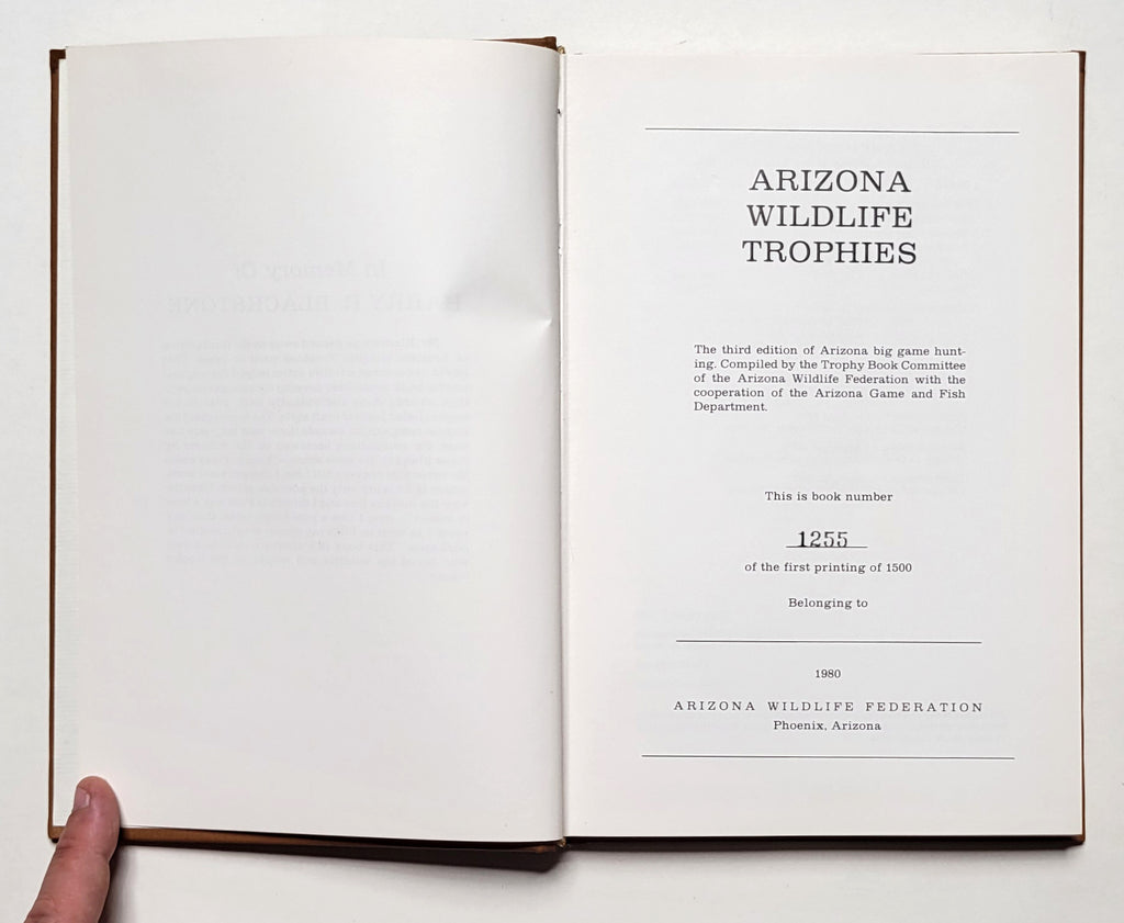 Nancy Lewis (Editor) Arizona Wildlife Trophies (Millennium Edition). Mesa: Arizona Wildlife Federation, 2000. Hardbound in dust jacket. xxiv, 420 pages. Illustrated. Copy #719 of a limited edition of 1500. Book and dust jacket fine. $25.