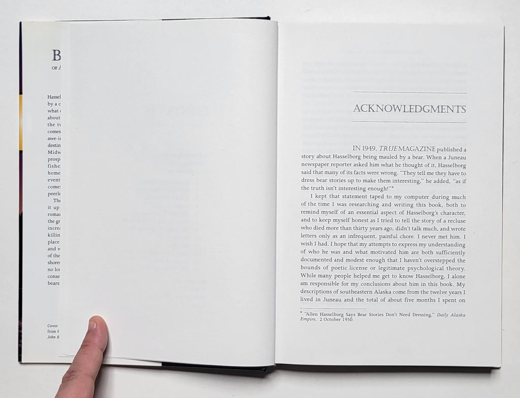 John R. Howe, Bear Man of Admiralty Island: A Biography of Allen E. Hasselborg. Fairbanks, AK: University of Alaska Press, 1996. Hardbound in dust jacket. xxvi, 248 pages. Illustrated, bibliography, index. Book very fine; dust jacket fine. $50.