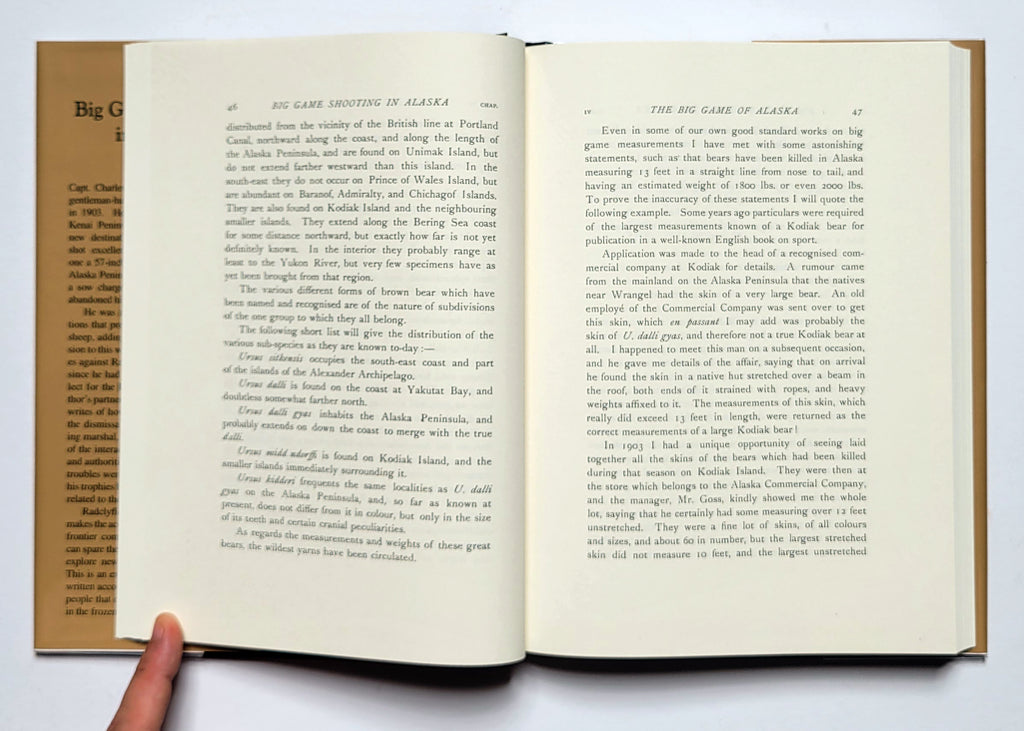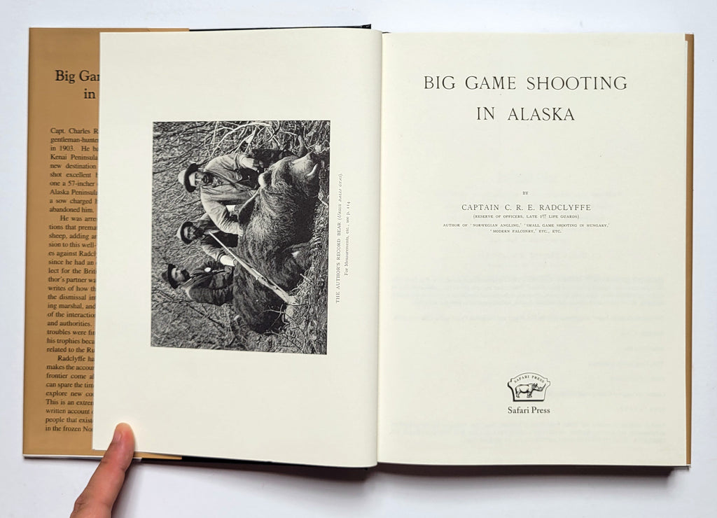 C. R. E. Radclyffe, Big Game Shooting in Alaska. Hardbound in glassine-protected dust jacket. Long Beach, CA: Safari Press, 2008. Xvi, 292 pages. Reprint of the 1904 edition. Illustrated, index. Book and dust jacket very fine. $35.