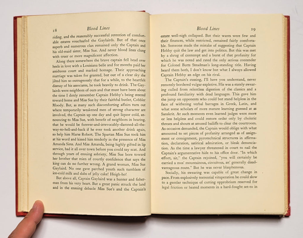 Nash Buckingham, Blood Lines. NY: G. P. Putnam’s Sons, 1947. Hardbound. 1st trade edition. 192 pages. Illustrated. Lacks dust jacket. Fair. Bottom back corner bumped and a bit orn. $10.