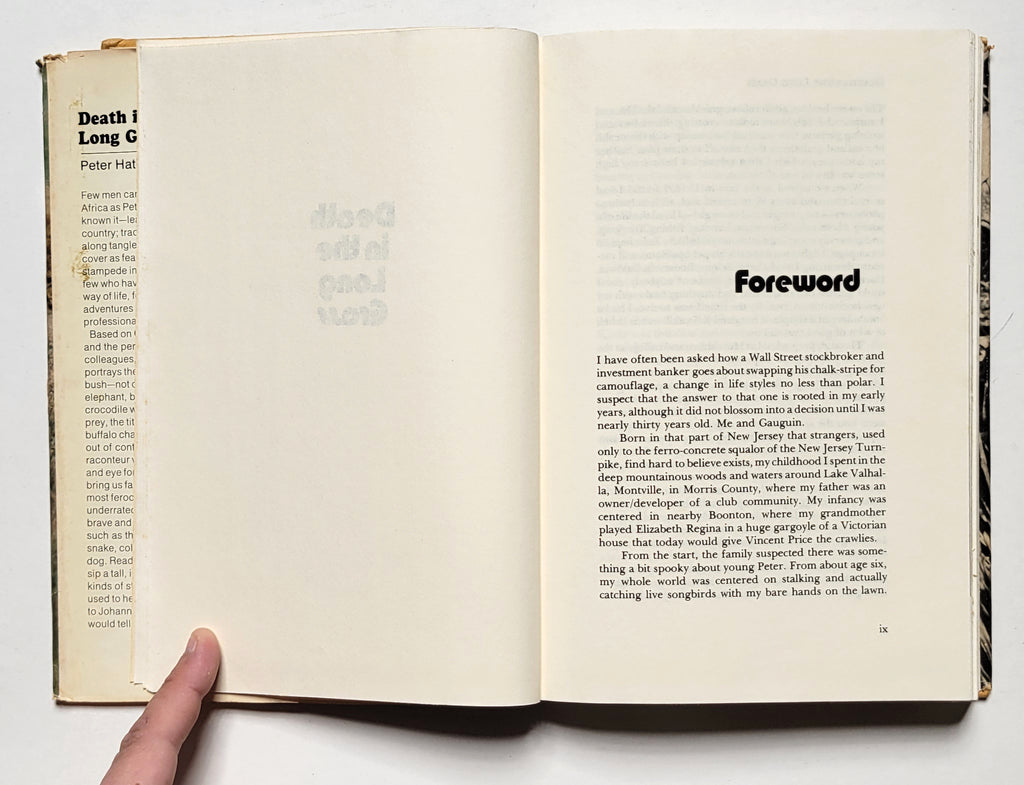 Peter Capstick, Death in the Long Grass. NY: St. Martin’s Press, 1977. Hardbound in dust jacket. xvi, 297 pages. Illustrated. Book and dust jacket fair. $11.