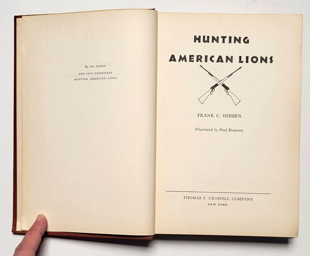 Frank Hibben, Hunting American Lions. NY: Thomas Y. Crowell Co., 1948. Hardbound. viii, 225 pages. Illustrated. Fair. $20.