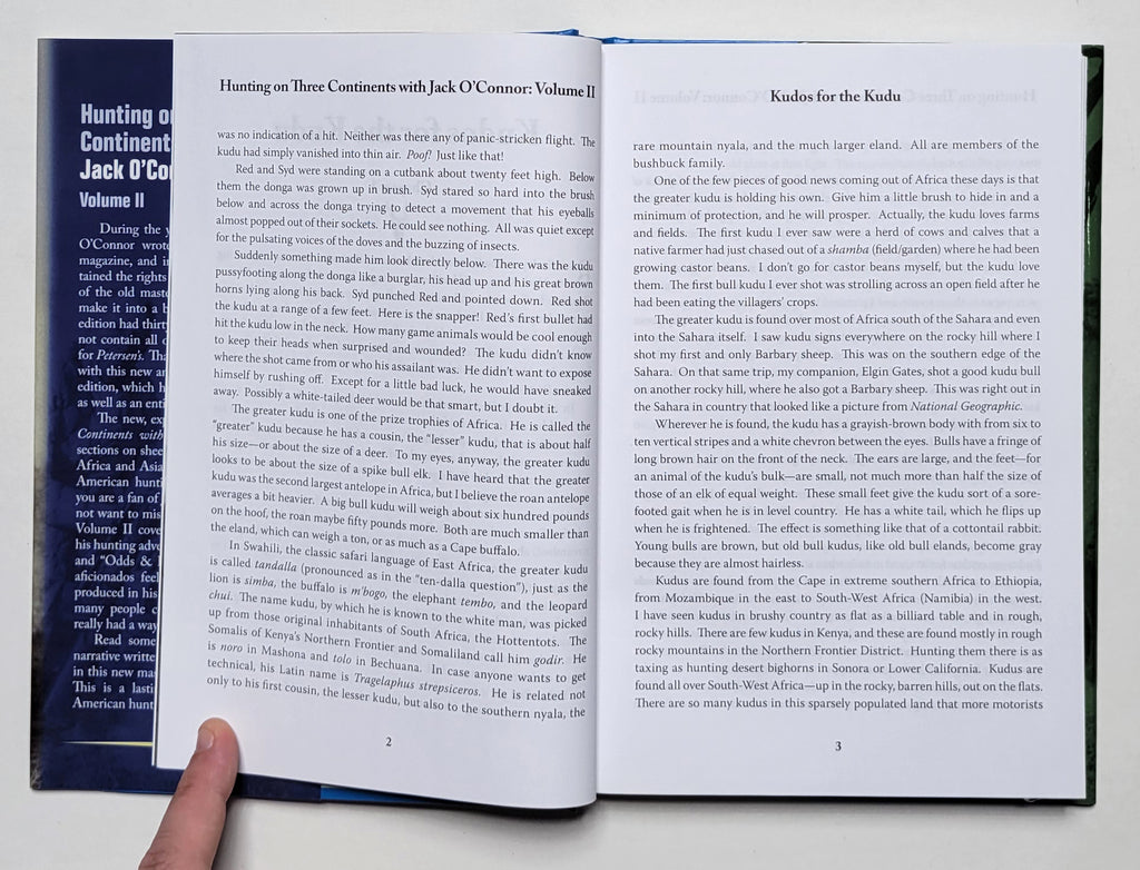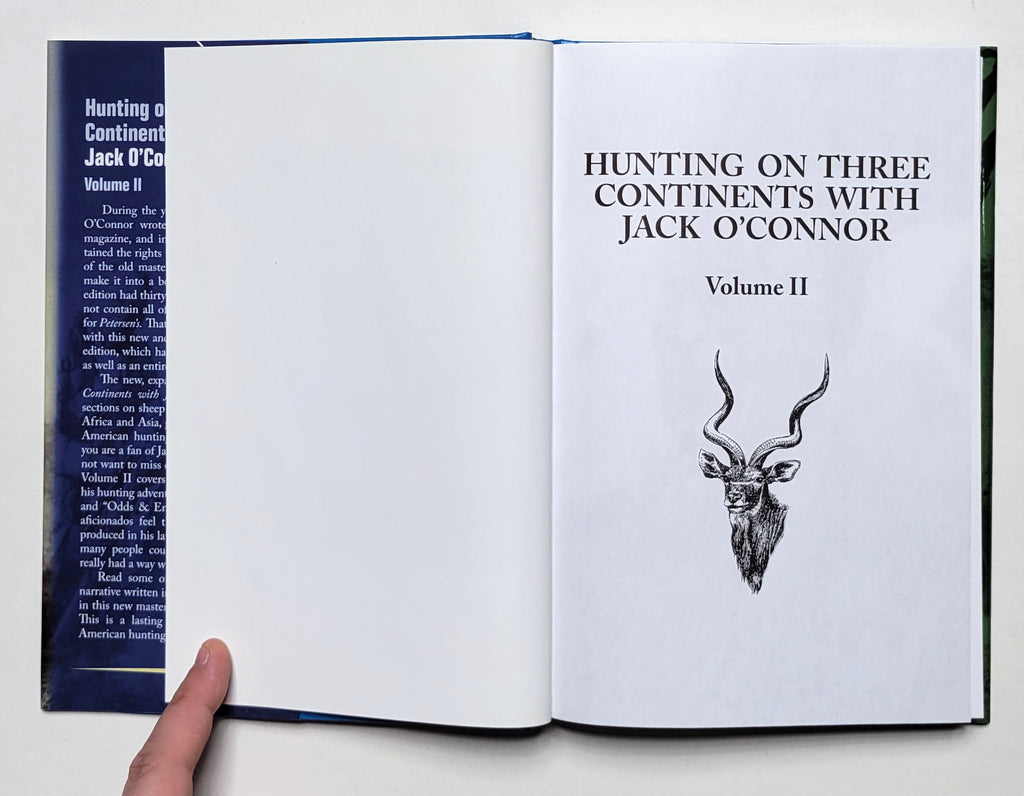 Jack O’Connor, Hunting on Three Continents with Jack O’Connor. 2 volumes. Long Beach, CA: Safari Press. Hardbound in dust jackets. X, 262 pages; xii, 257 pages. Illustrated. Both volumes are fine in fine dust jackets. $110.