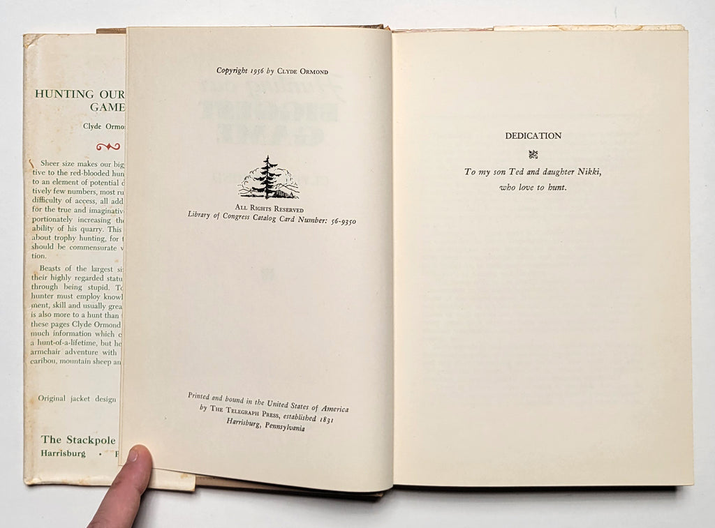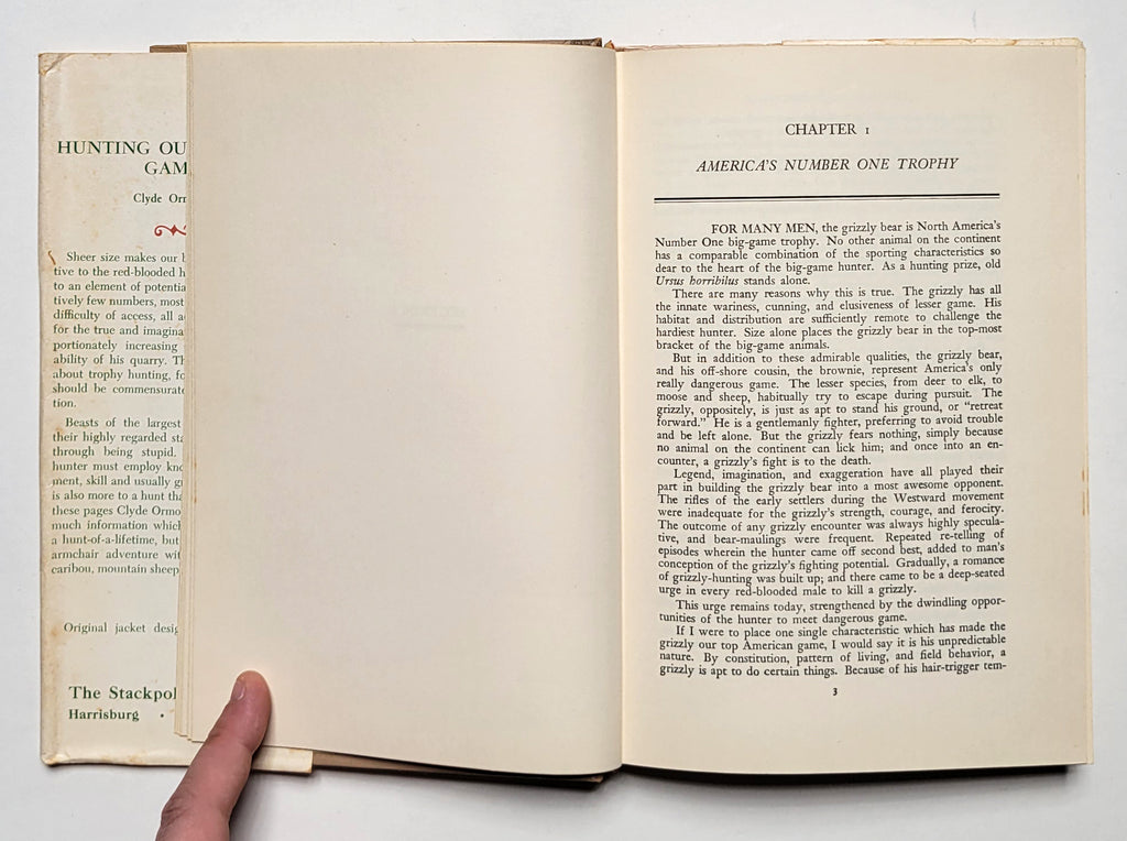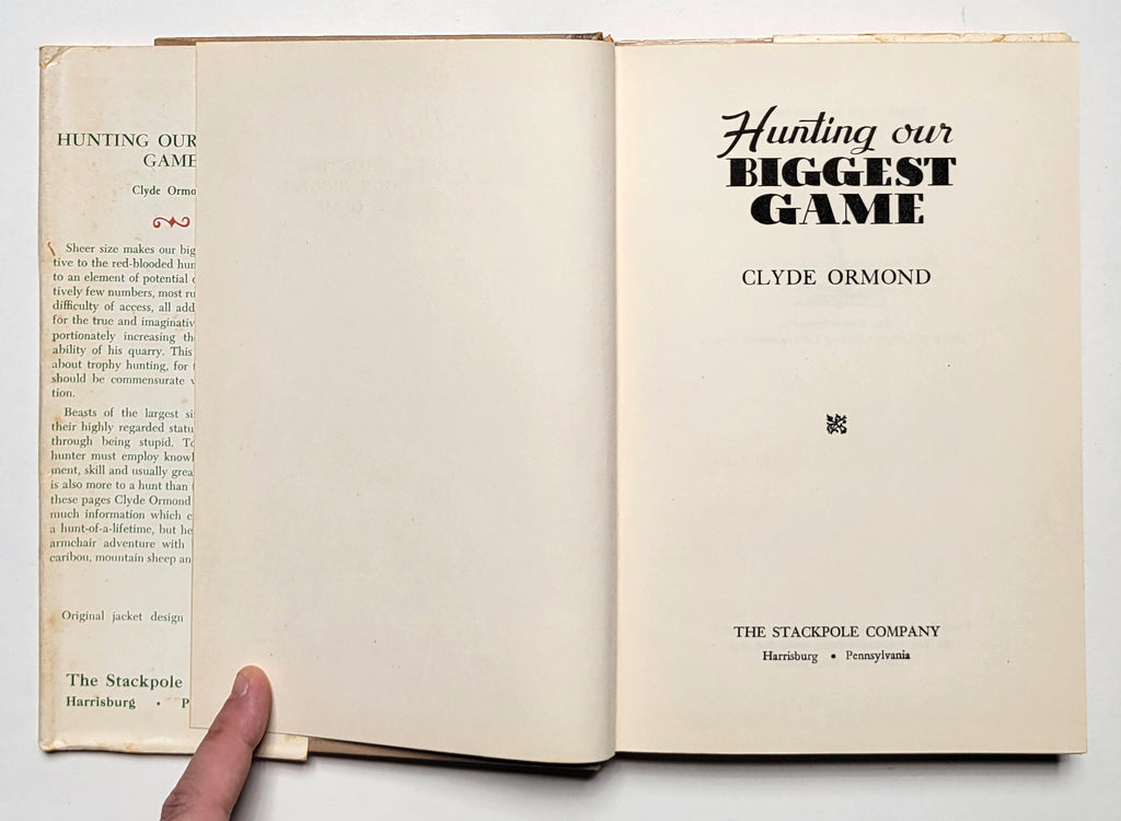 Clyde Ormond, Hunting Our Biggest Game. Harrisburg, PA: Stackpole, 1956. Hardbound in dust jacket. [viii], 197 pages. Book and dust jacket fair. $8.