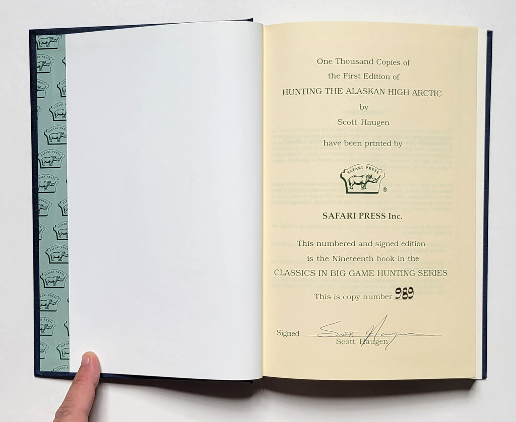 Scott Haugen, Hunting the Alaskan High Arctic. Long Beach, CA: Safari Press, 2000. Hardbound in slipcase. Xvi, 240 pages. Illustrated. Signed copy #989 of 1000. Book and slipcase very fine. $80.