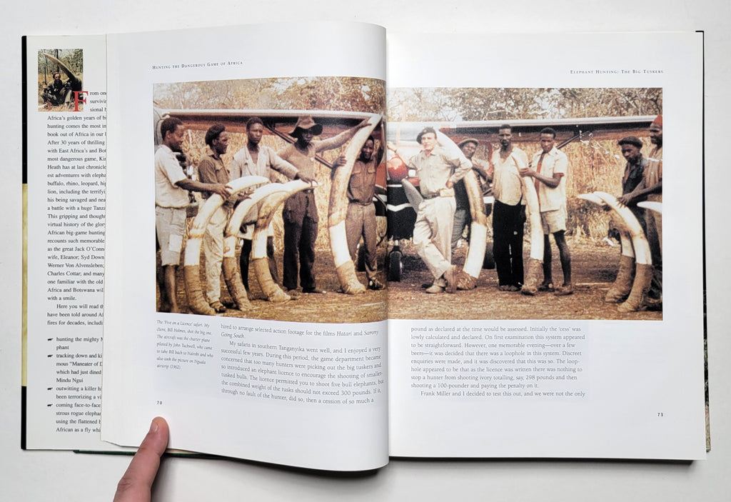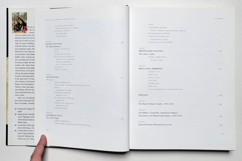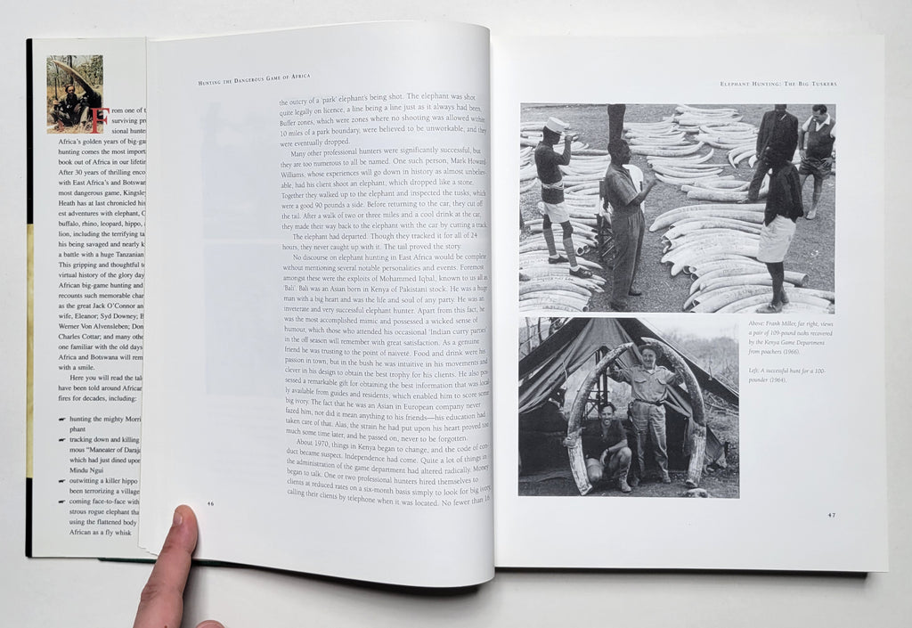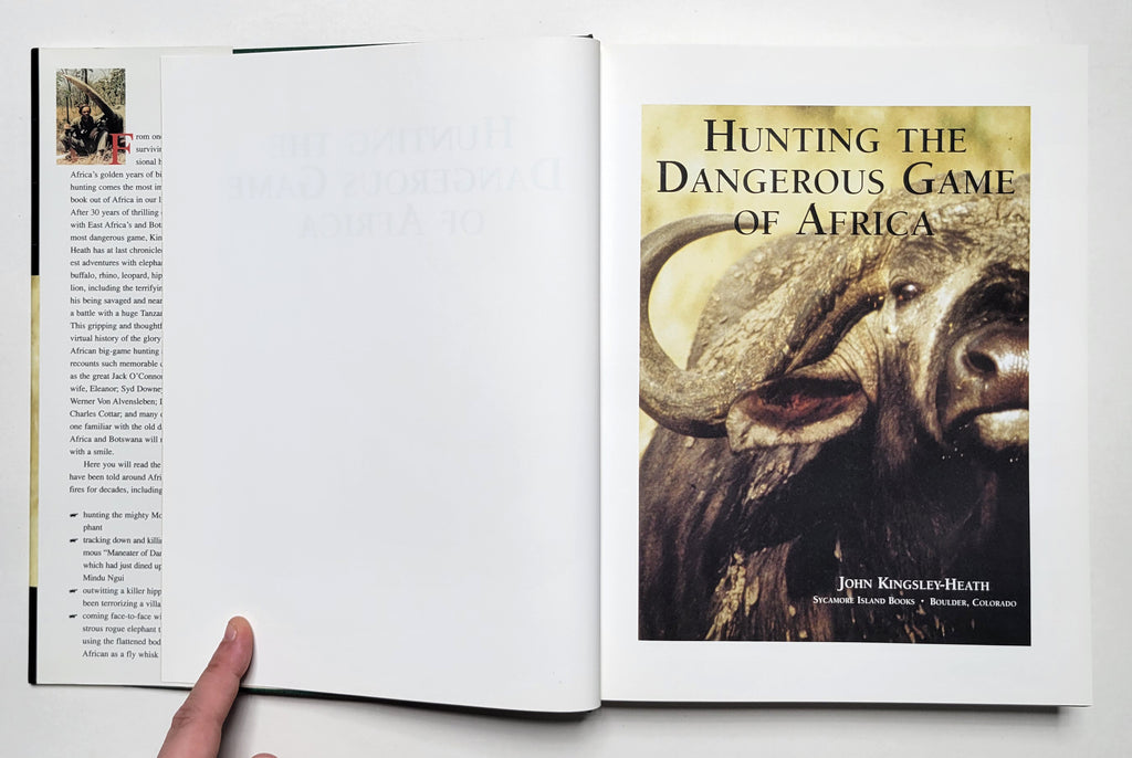 John Kingsley-Heath, Hunting the Dangerous Game of Africa. Boulder, CO: Sycamore Island Books, 1998. Hardbound (folio size) in dust jacket. xvi, 477 pages. Lavishly illustrated, bibliography. Book and dust jacket near fine. $250.