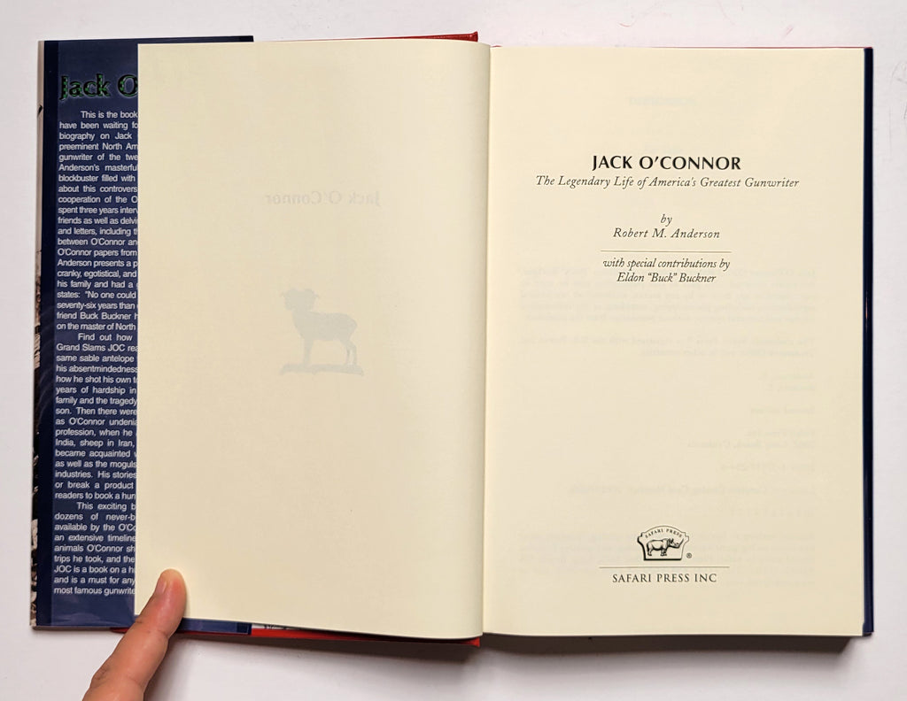 Robert Anderson, Jack O’Connor: The Legendary Life of America’s Greatest Gunwriter (with contributions from Buck Buckner). Long Beach, CA: Safari Press, 2002. 2nd edition. xx, 261 pages. Illustrated, bibliography. Book and dust jacket very fine. $25.