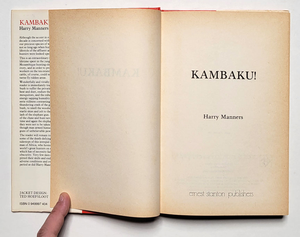 Henry Manners, Kambaku! Johannesburg: Ernest Stanton, 1980. Hardbound in dust jacket. vi, 209 pages. Illustrated. Book fine; dust jacket good. 1st edition. $60.