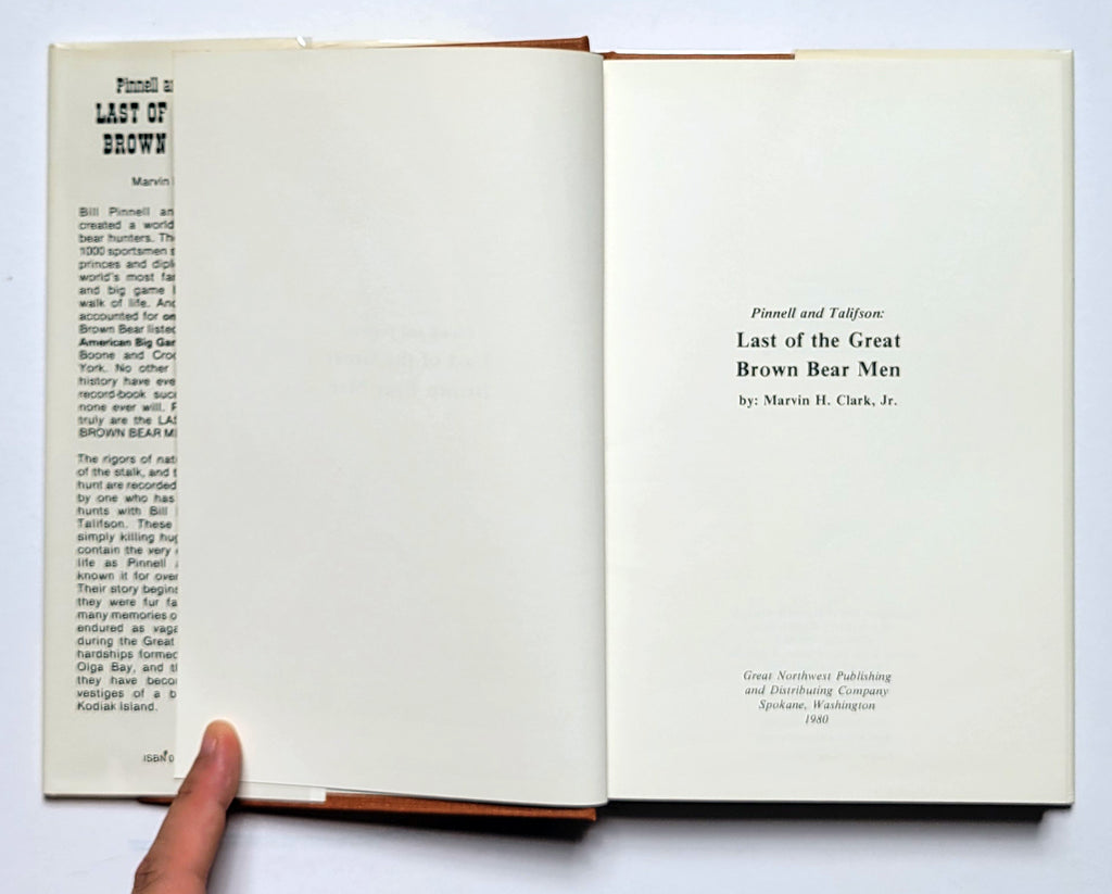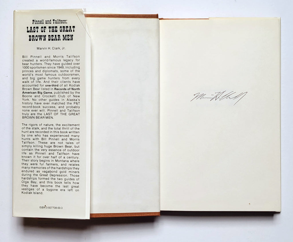 Marvin H. Clark, Jr., Pinnell and Talifson: Last of the Great Brown Bear Men (with a Foreword by “Slamming” Sam Sneed). Hardbound in glassine-protected dust jacket. Spokane: Great Northwest Publishing, 1980. 224 pages. Signed copy. Illustrated. Book and dust jacket very fine. $100.