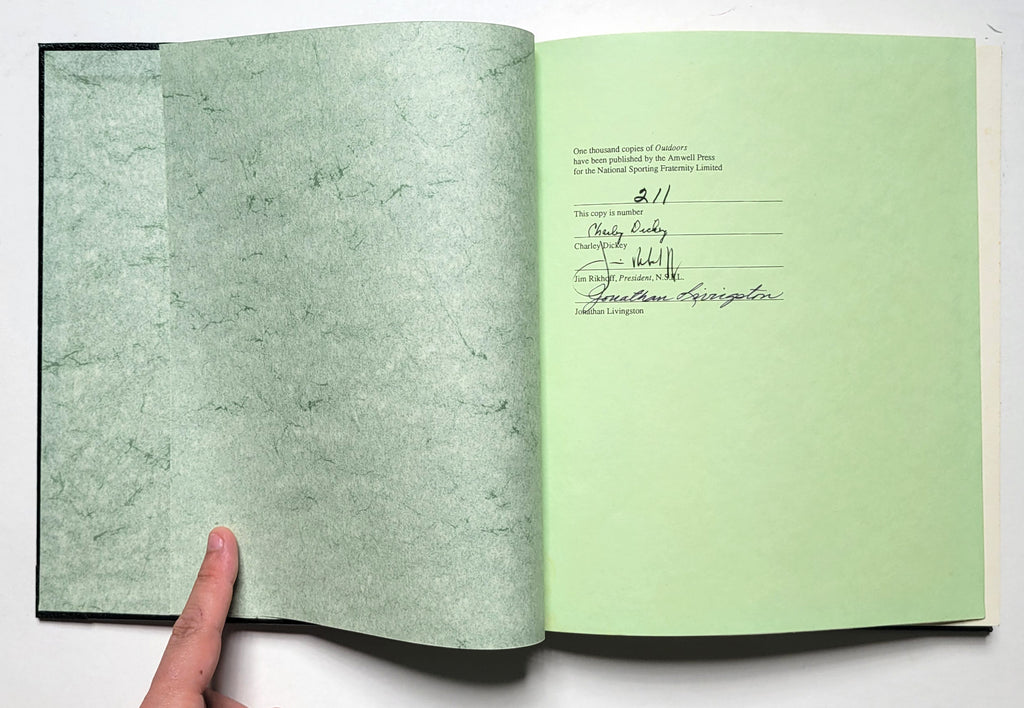 Charley Dickey, Outdoors. Clinton, NJ: Amwell Press, 1989. Hardbound in board slipcase. Xiv, 140 pages. Illustrated. Signed copy #211 of an edition of 1000. Book and slipcase good. $30.