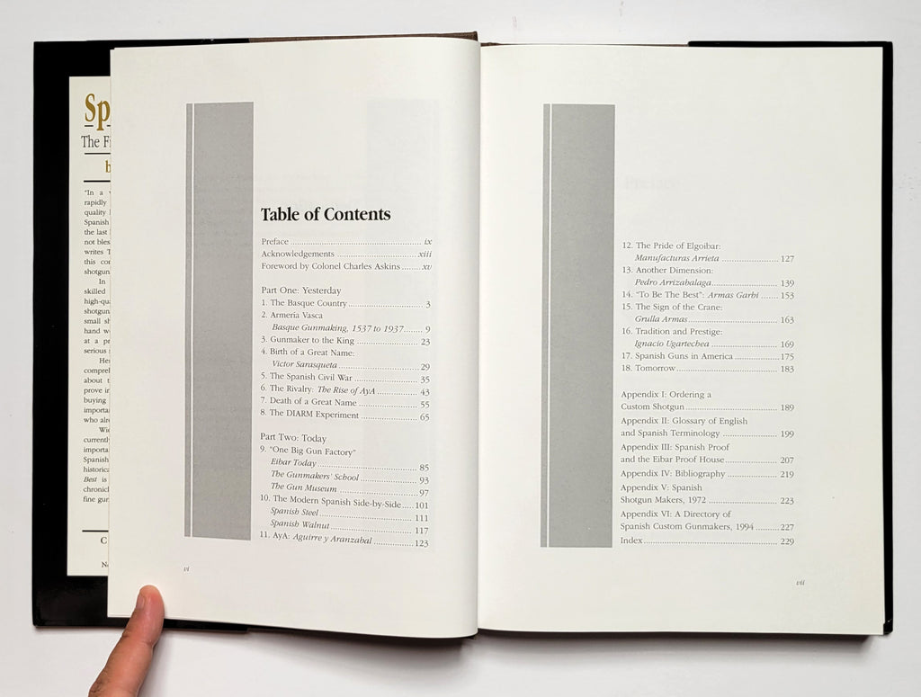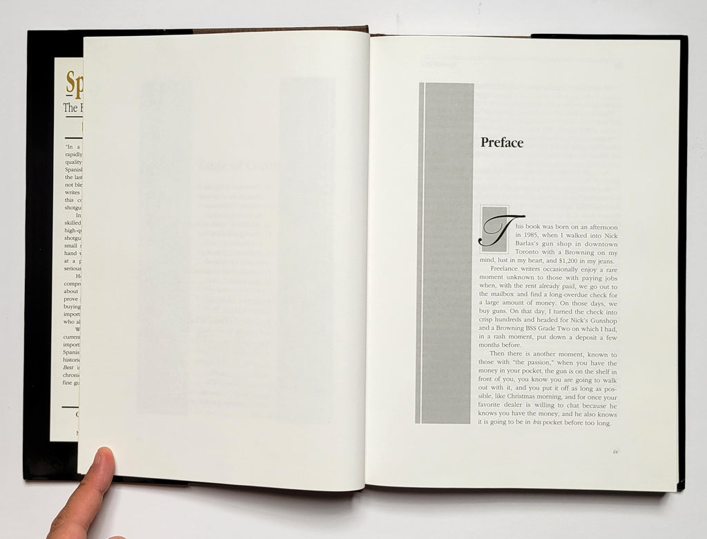Terry Wieland, Spanish Best: The Fine Shotguns of Spain. Hardbound in dj. New Albany, OH: Countrysport Press, 1994. 1st edition.  xx, 236 pages. Illustrated, index. Book and dust jacket fine to very fine. $32.
