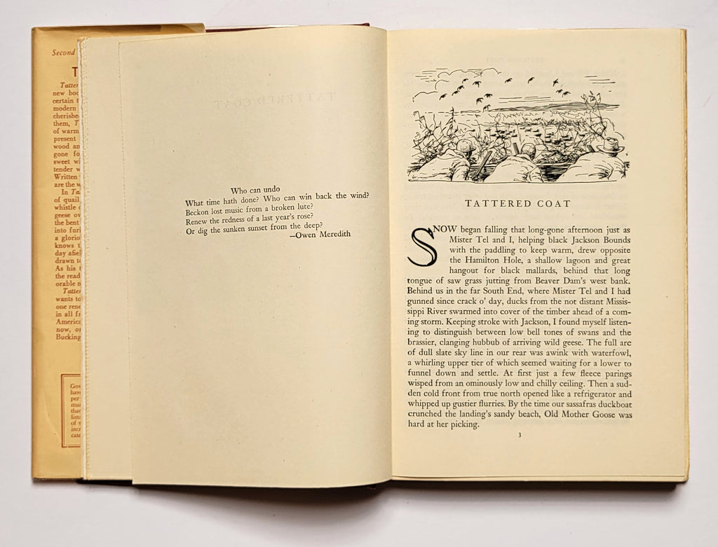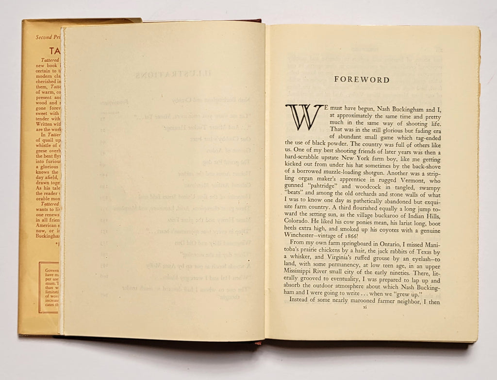Nash Buckingham, Tattered Coat: Tales of Shooting and Fishing. NY: G. P. Putnam’s Sons, 1944. Hardbound in glassine-protected dj. xiv, 210 pages. Illustrated. Book fine and dust jacket good.  $45.