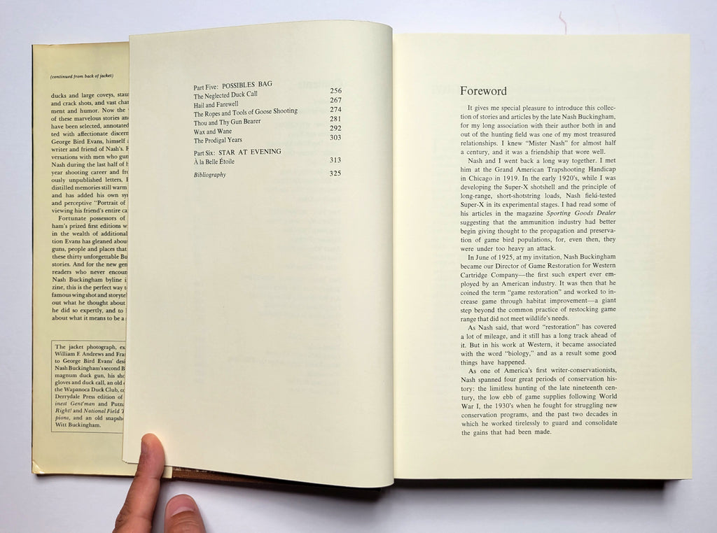 Nash Buckingham, The Best of Nash Buckingham (Edited and Annotated by George Bird Evans). NY: Winchester Press, 1973. Hardbound in dust jacket. [x], 320 pages plus six unnumbered pages of bibliography. Book about fine; dust jacket very good. $25.