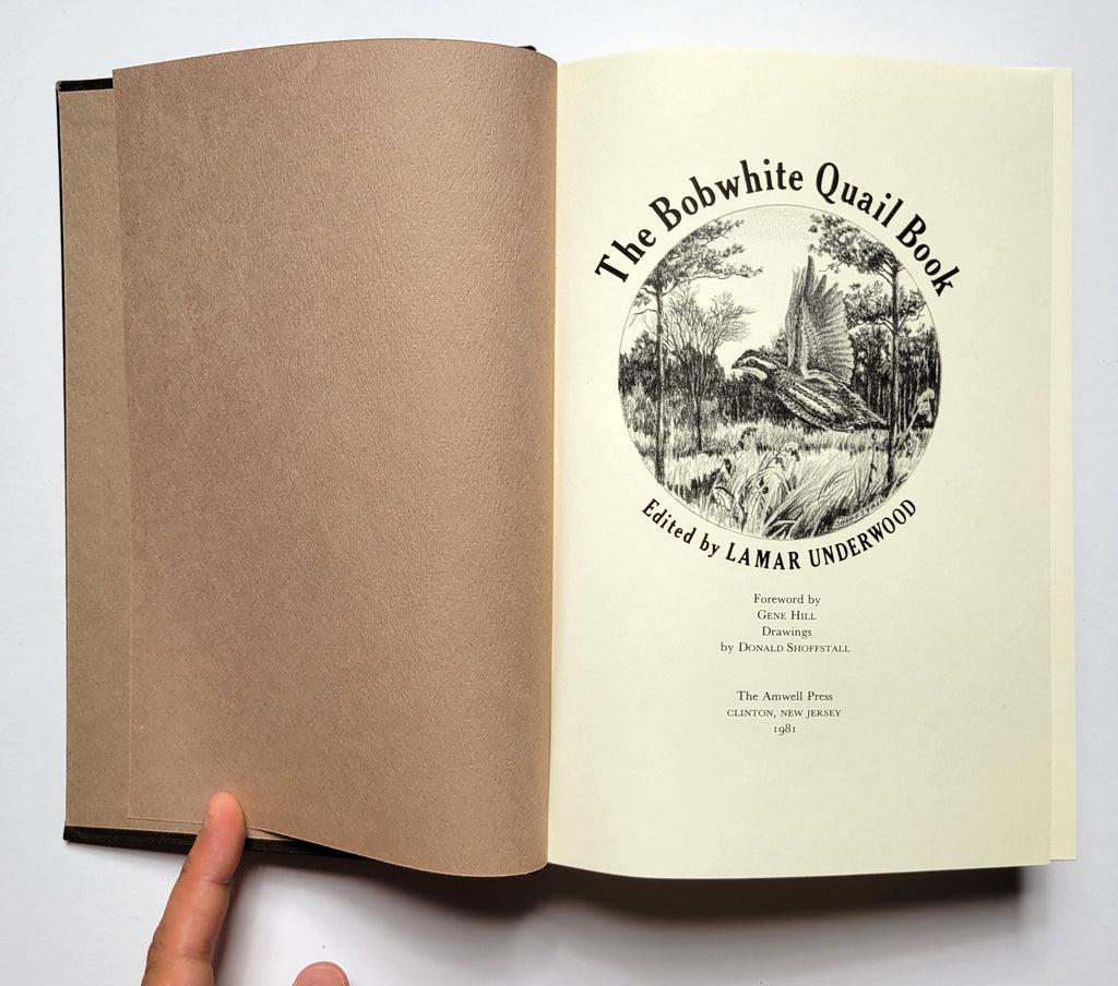 Lamar Underwood (Editor), The Bobwhite Quail Book (Foreword by Gene Hill). Clinton, NJ: Amwell Press, 1981. 2nd trade printing. Hardbound. xx, 443 pages. Illustrated. Very good. $30.