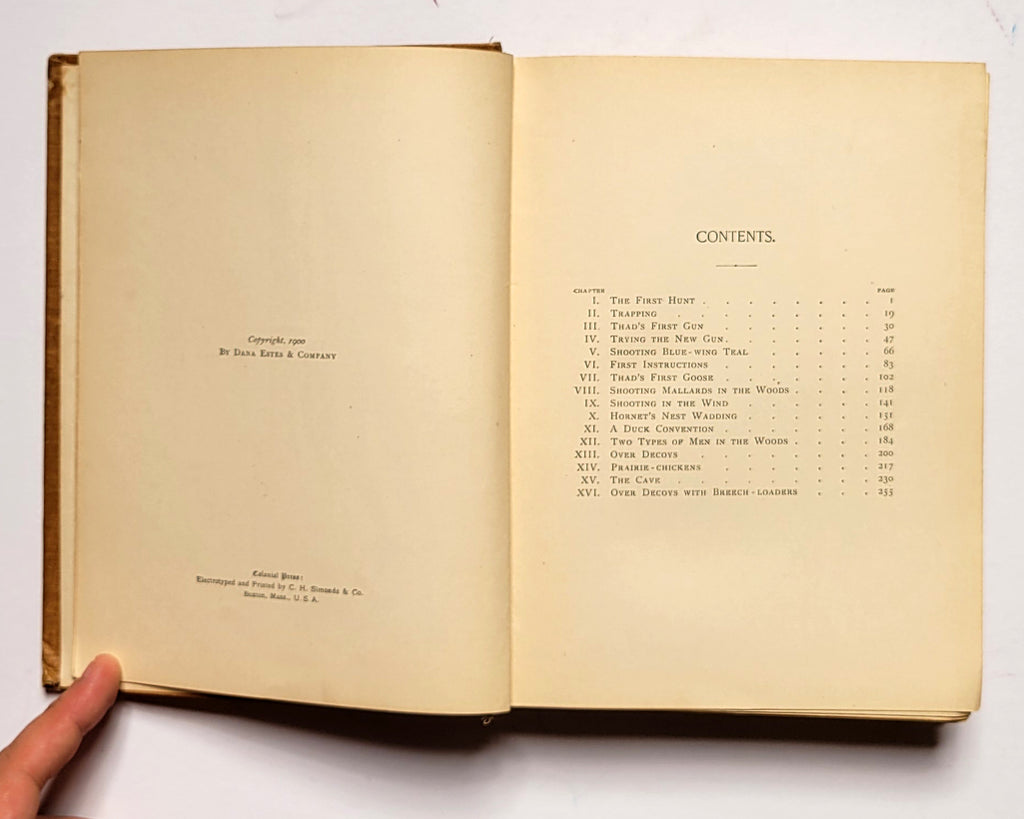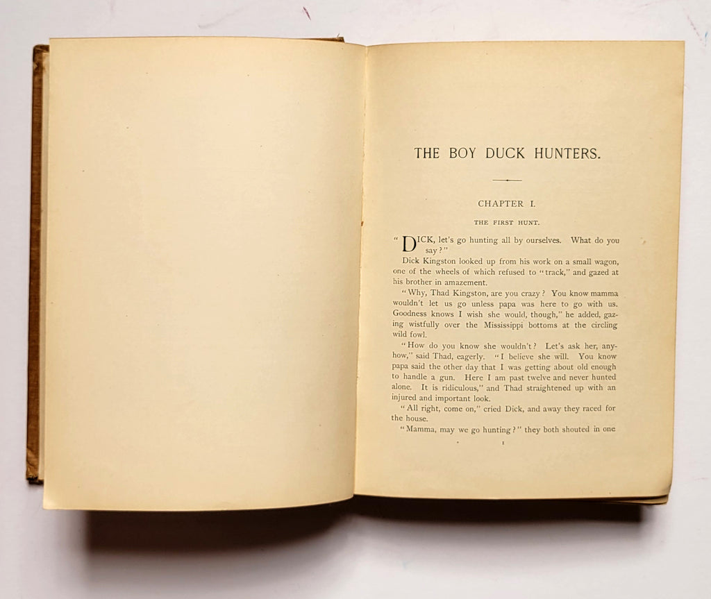 Frank E. Kellogg, The Boy Duck Hunters. Boston: Dana Estes & Co., 1900. Hardbound. [vi], 265 pages. Illustrated. Fair copy of an early and unusual juvenile. $30.