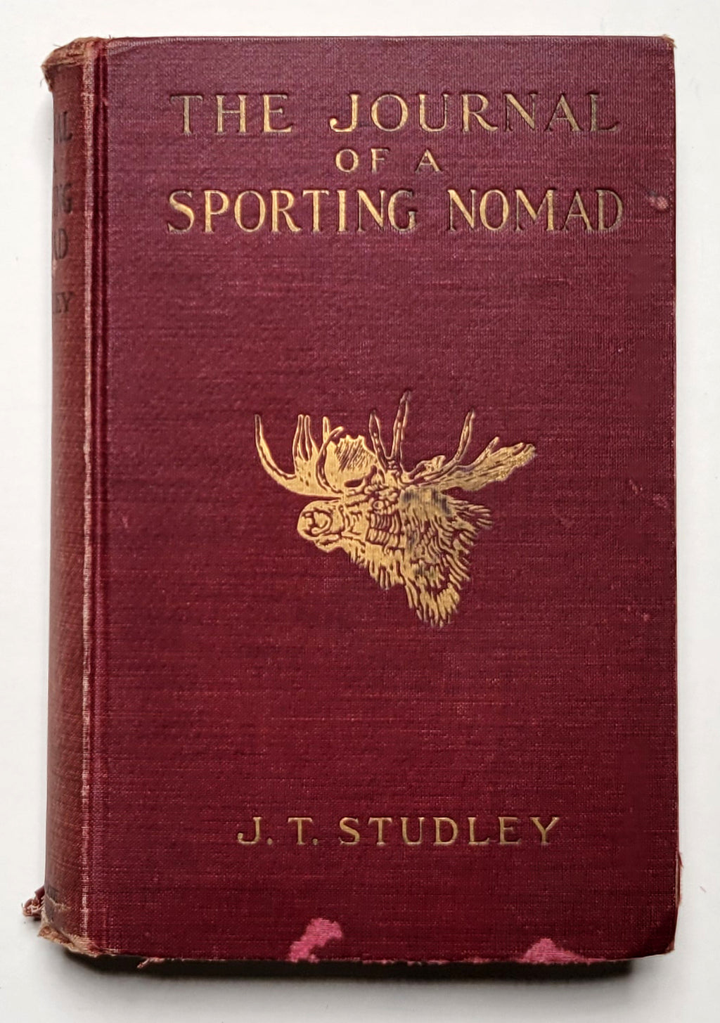 J. T. Studley, The Journal of a Sporting Nomad. London: John Lane, 1912. Hardbound. xvi, 303 pages. Illustrated, index. Externally book is poor, with worn and stained cove, top and bottom of spine frayed. Internally quite clean—fine candidate for rebinding. $20.